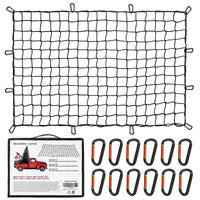Q: How is the cargo net installed and secured?A: The cargo net comes with 12 metal carabiners, making installation quick and easy. Simply attach the carabiners to secure points in your truck bed.