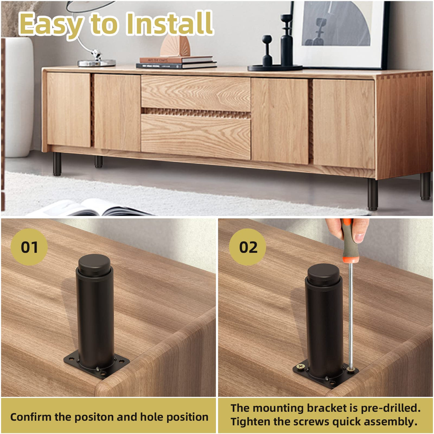Package Includes: The set comes with 2 Adjustable Furniture Legs and 8 Mounting Screws for your convenience.