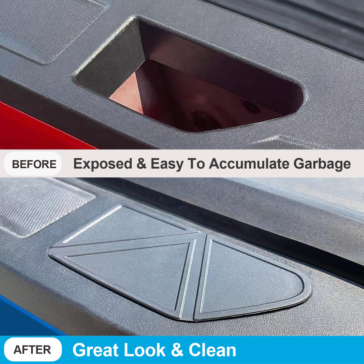 Q: Do these stake pocket covers prevent debris from entering the truck bed?A: Yes, the JKCOVER Bed Rail Stake Pocket Covers are designed to create a sealed, clean surface for your truck bed rail, effectively keeping out garbage, leaves, sand, rain, and snow from the stake holes.