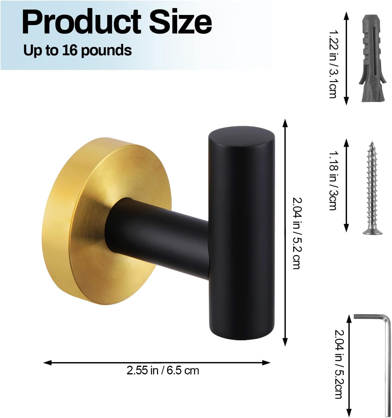 Kruodop Towel Hooks For Bathroom,2 Packs Wall Mount Towel Holder,Blak Gold Matte Wall Robe Hook,Stainless Steel Heavy Duty Door Hanger Towel Hook For Kitchen, Bedroom,Hotel,Pool,Coats