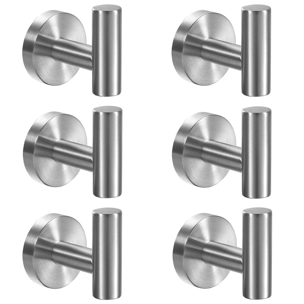 Kruodop Towel Hooks For Bathroom,6 Packs Wall Mount Towel Holder,Black Matte Wall Robe Hook,Stainless Steel Heavy Duty Door Hanger Towel Hook For Kitchen, Bedroom,Hotel,Pool,Coats - Silver