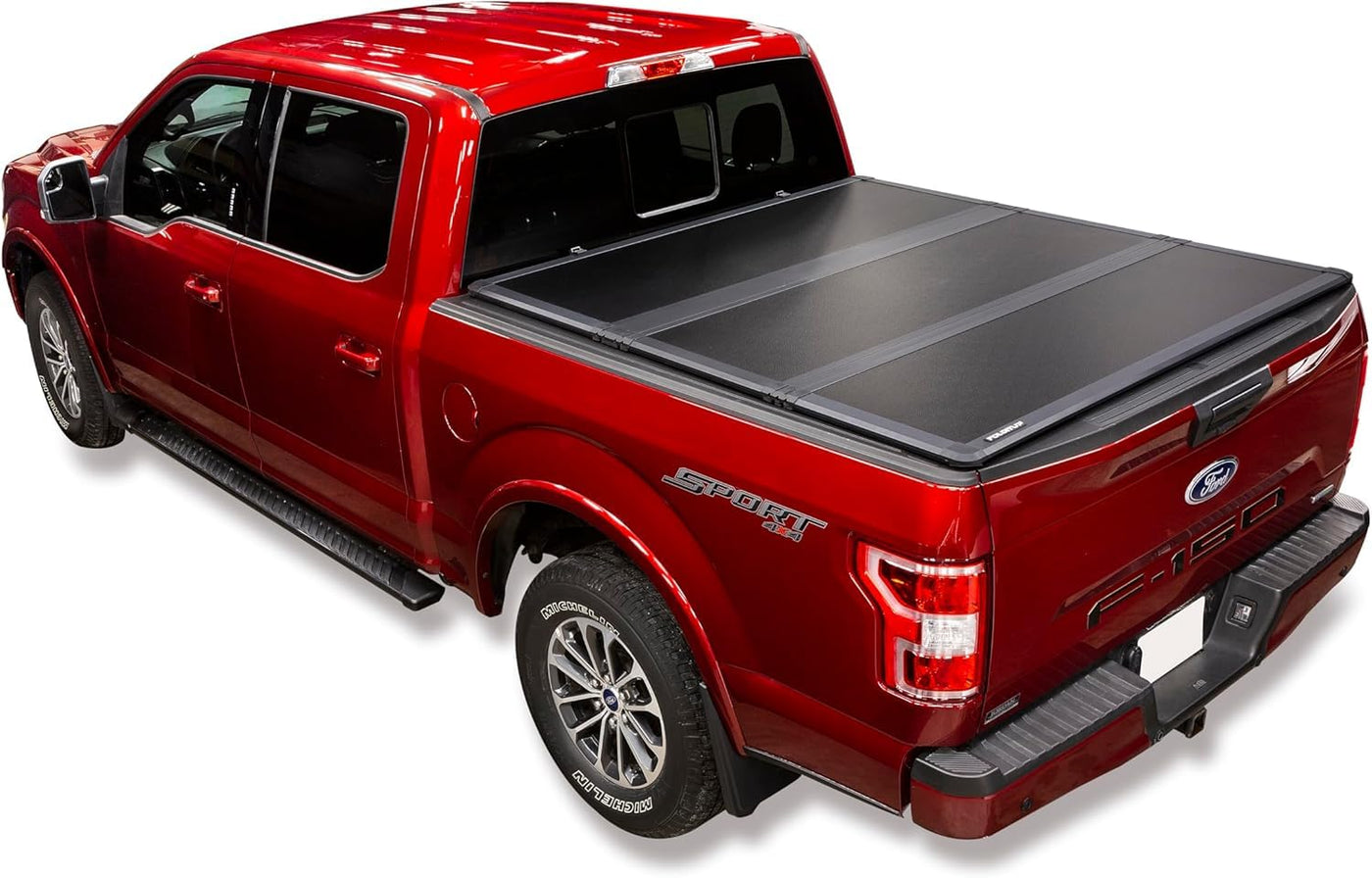 Fits 2014-2018 Chevy Silverado and GMC Sierra with a 5'8 truck bed | DURABLE & WEATHERPROOF: Dent-resistant fiberglass-reinforced polymer skins on top and bottom, all-weather textured matte panels shed water for long-term protection | FOLD UP & CARRY MORE: Quad-fold design secures storage or folds for additional gear, 3rd brake light stays visible, CYNC latching system offers convenient one-handed operation, | EASY INSTALL: Quick clamp assembly using no drill, 2 Allen wrenches included, can be latched even when the tailgate is closed | MADE IN USA: Proudly made in the USA with a 3-Year Limited Warranty