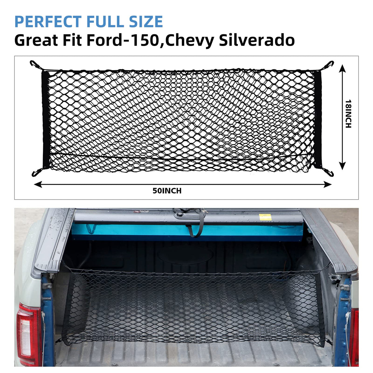 LINKCRO Black Truck Bed Cargo Net, 50” x 18”, Premium Mesh Organizer for Chevrolet Silverado, FT150, GMC - Durable Storage Solution
