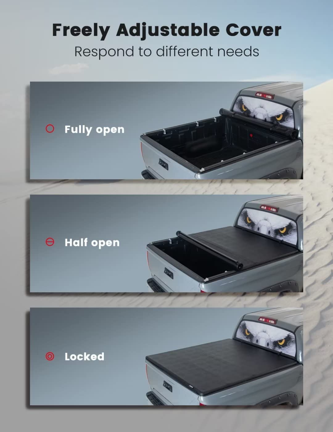 Q: What materials are used in the Logan Tonneau Cover?A: The Logan Tonneau Cover is made of high-quality materials, featuring a hybrid hard panel with a vinyl topping and a 6063 Grade Epoxy Coated Aluminum Frame, ensuring durability and security for your cargo.