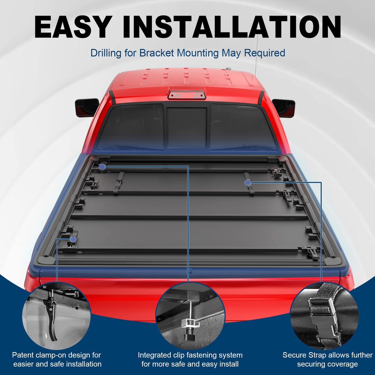 ?? Compatible for 2009-2014 Ford F-150 (Excl. Raptor Series) For models without the Cargo Management Utility Track System | ?? Design: Bed Length: 6.5' feet; 1 Pcs of Stick Touch Lamp Included | ?? High Quality with 3 Mounting Point: Quad Fold Truck bed is made by double sided tear-resistant vinyl with 3 heavy duty aluminum powder coated frames. It has 4 horizontal crossbars to avoid air lifting issue. | ?? Features: Cover can be washed with soap and water, Keeps your equipment inside your bed dry, Waterproof, Cover can be removed quickly. | ?? Please measure your truck bed length and make sure you have the correct model before ordering!