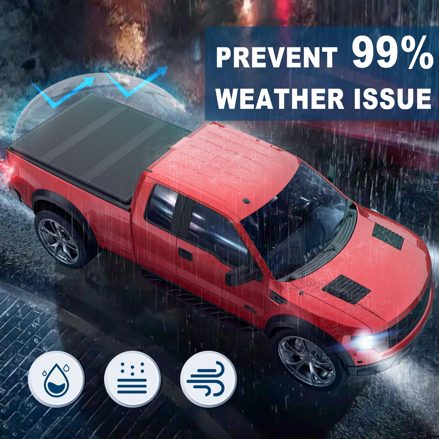 Mostplus Tri Fold Fiberglass Truck Bed Tonneau Cover Compatible With 2009-2014 Ford F150 F-150 (Excl. Raptor Series) Styleside 5