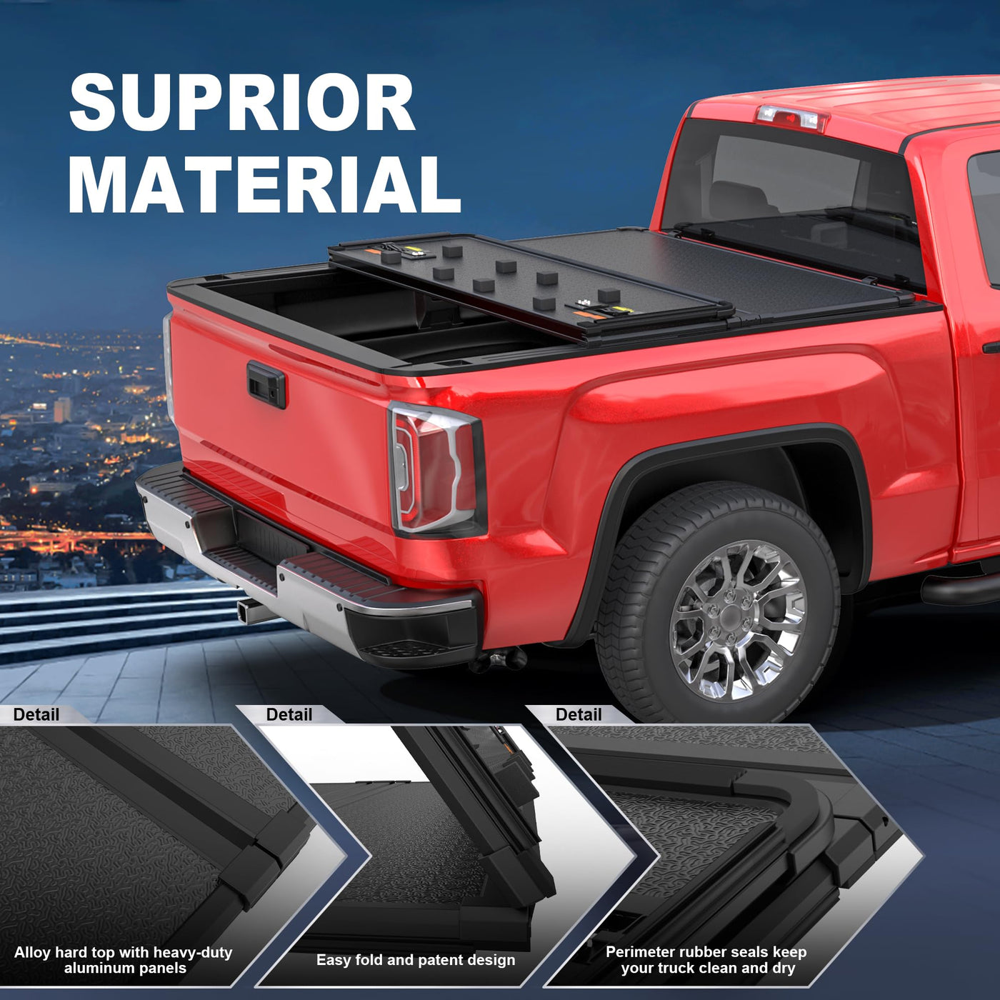 Mostplus Tri-Fold Hard Truck Bed Tonneau Cover On Top Compatible For 2014 2015 2016 2017 2018 Chevy Silverado/Gmc Sierra Bed 3 F