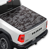 Give your Ram 1500, 2500, or 3500 the ultimate bed protection with the MotorBox Soft Tri-Fold Tonneau Cover, designed for trucks with a 6.4 ft bed. This tri-fold cover provides a significant upgrade in convenience and accessibility compared to traditional roll-up covers. The fold-up design allows you to access your cargo quickly, while the Black Flag graphic adds a stylish touch to your truck, ensuring it stands out on the road.