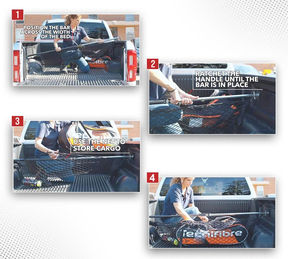 Mytee Products 4 Pack 40''-70'' Ratcheting Cargo Bar For Pickup Truck Bed With 60 X24 Storage Net - Adjustable Load Lock Ba
