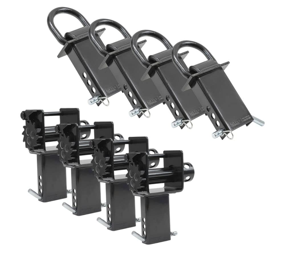 (4 Pcs) Trailer Stake Pocket D-Ring Flatbed Utility STRONG: Our stake pocket D-Rings are forged steel with a black powder coated finish. Each stake pocket D-ring has a working load limit of 5400 lbs. Capacity is 16,200 lbs. Do not exceed Working Load Limit. PRECISE PLACEMENT: Provides a D-ring exactly where you need it on your trailer. Each stake pocket D-Ring comes with a hitch pin w/ locking cotter pin and 4 pin holes, so you can adjust the height of your Stake pocket D-ring to fit your current load. FITS MOST STAKE POCKETS: Not all stake pockets are identical. Designed to be compatible with standard 2 x 4 stake pockets. This includes common flush and outside stake pockets. Please be sure to measure before you purchase. (4 Pcs) Trailer Stake Pocket Winch Flatbed Utility Stake Pocket Winch Gives you a Winch anywhere there is a Stake Pocket. Fits common flush and outside Stake Pockets Has 4 cotter pin holes for precise pin placement to ensure a perfect fit in your stake pocket. Black Powder Coated Working Load Limit: 5400 lbs Capacity: 16,200 lbs Please verify measurements before purchase. Not Universal. Fits Standard Stake Pockets that are 1-1/2''W x 3-1/2''L or 1-5/8''W x 3-1/2''L. Can store 7 feet of strap while in use.