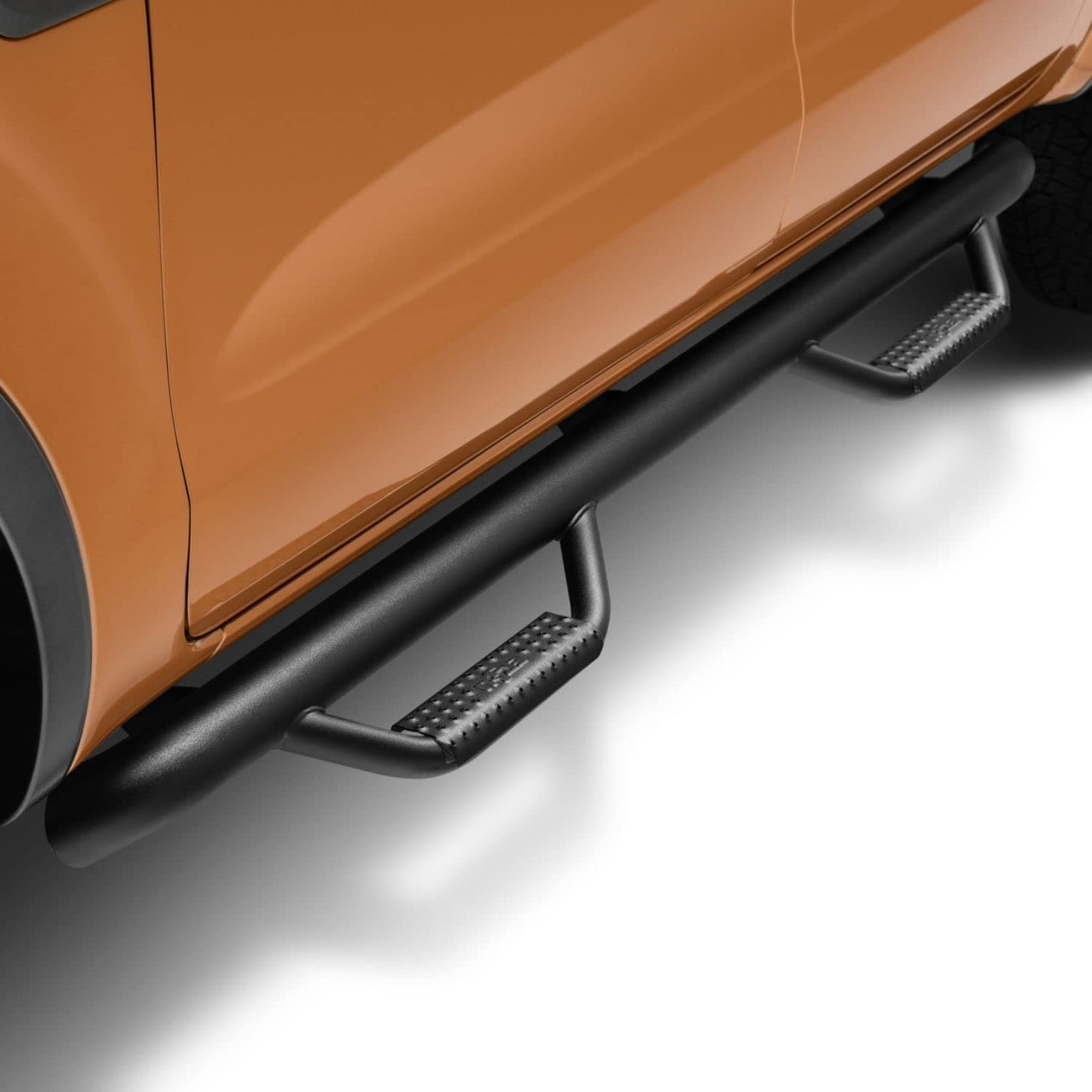 N-Fab Nerf Steps feature a clean design that fits high and tight to the vehicle body in either premium textured black or gloss black finishes, adding to the modern look of your ride. Nerf Step's fully welded 1-piece construction offers strength and durability. With a patented drop down hoop step at each door with metal, dimpled step plates, Nerf Steps allow for easy access to your stock or lifted vehicle and deliver reliable traction and stability in any weather condition. Installation is easy. Includes all mounting hardware and easy to understand, vehicle specific instructions. N-Fab products are backed by an industry leading 5-year warranty on the product's finish, and Limited Lifetime warranty on workmanship.