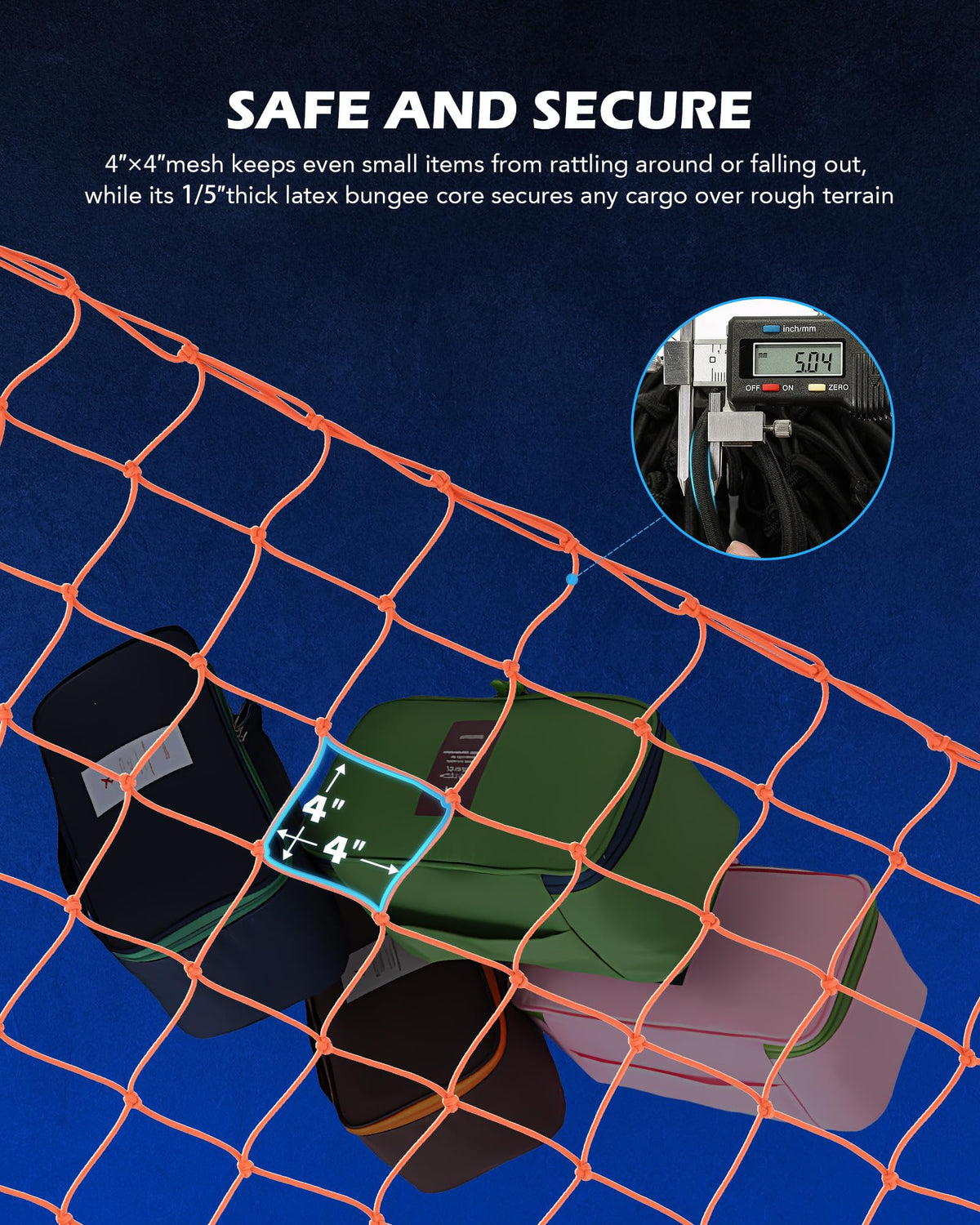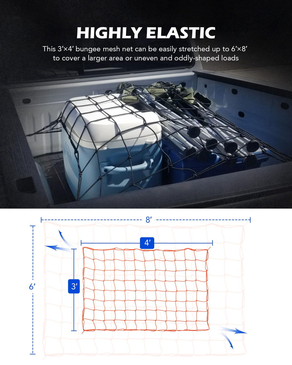 Orion Motor Tech Small Cargo Net, 3 'X4 ' Cargo Net For Roof Rack With 4 ''X4 '' Small Mesh, 6 'X8 ' Max Size Truck Bed Net With