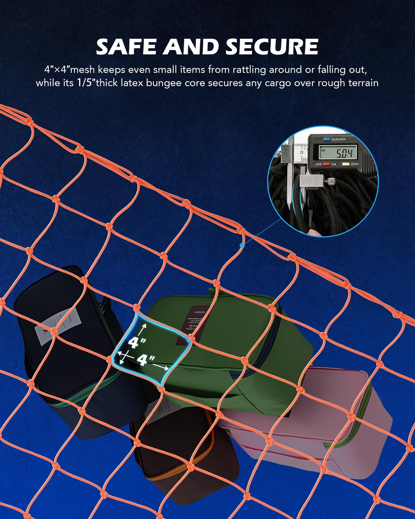 Orion Motor Tech Small Cargo Net, 3 'x4 ' Cargo Net for Roof Rack with 4 '' ''x4 '' '' Small Mesh, 6 'x8 ' Max Size Truck Bed Net with Locking Carabiners, Straps, Automotive Cargo Net
