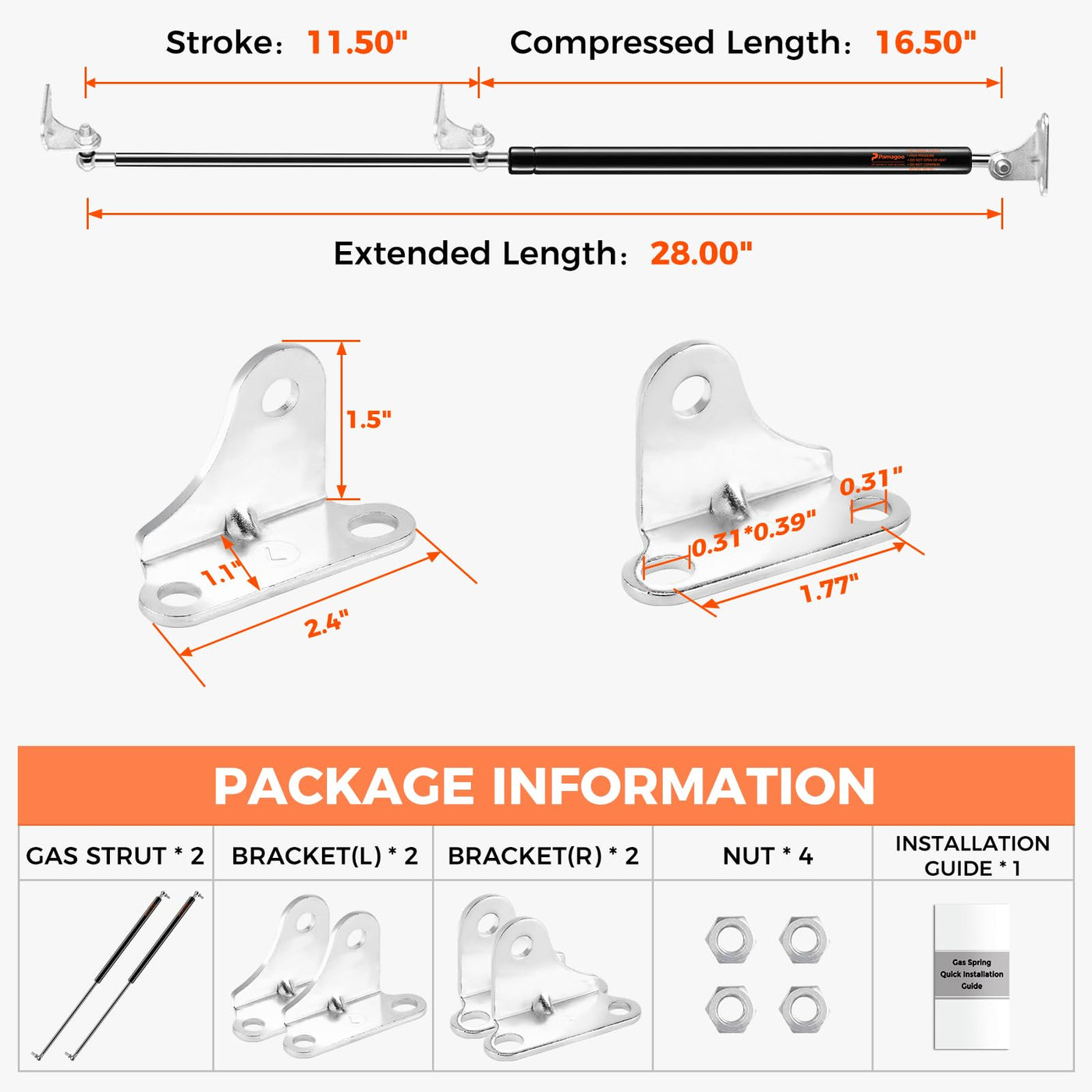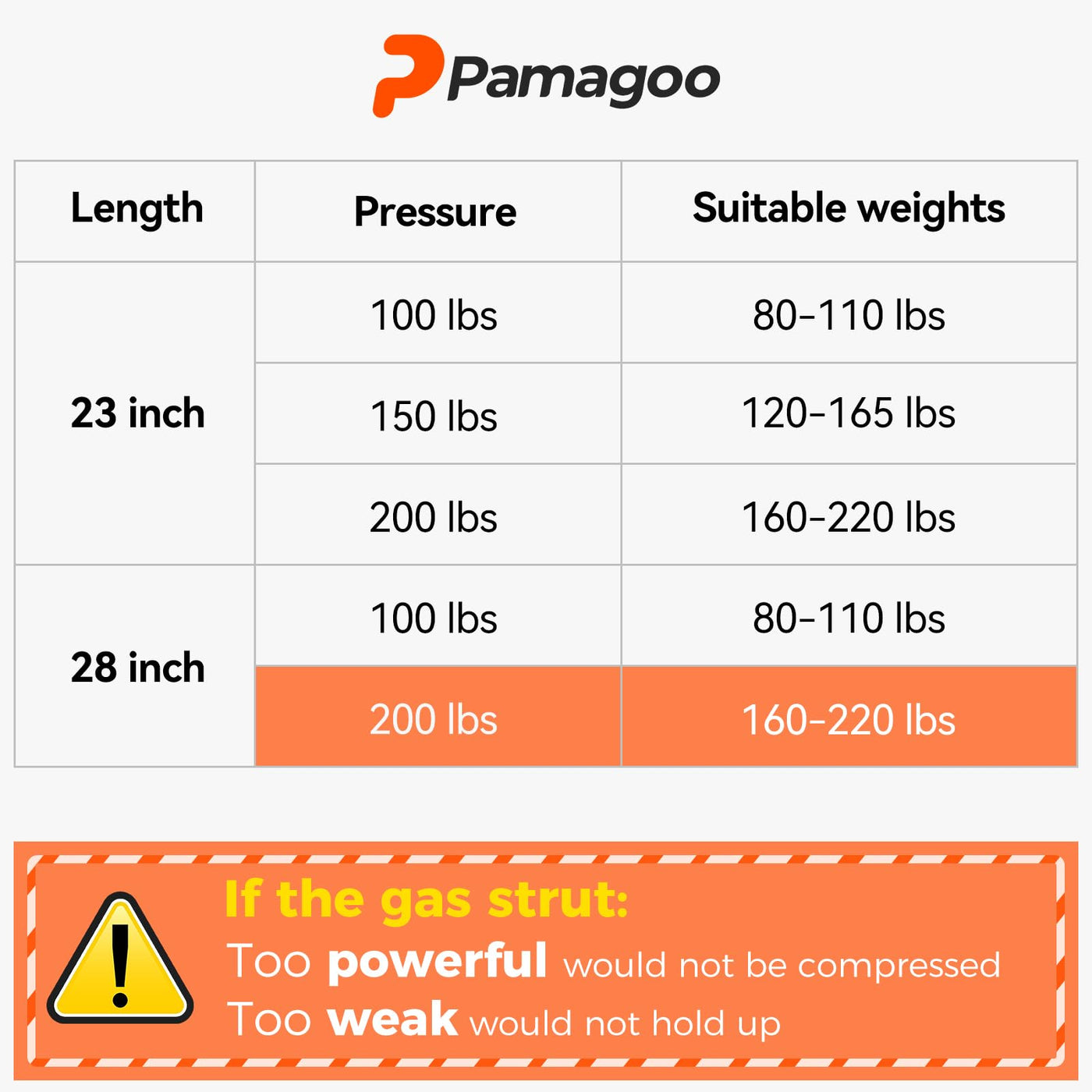 Pamagoo 28 Inch Gas Strut 200 Lbs Per Shock, 890N/200 Lbs Gas Spring Lift For Heavy Duty Lid Basement Floor Door Rv Bed Shed Doo