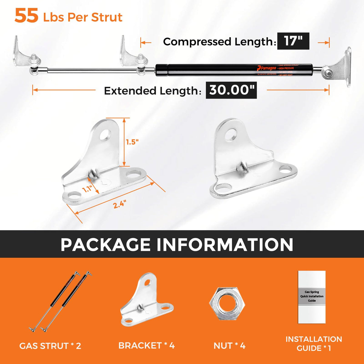 Pamagoo 30 Inch 55 Lbs Gas Strut With Mounting Brackets,2 Pcs 30'' 245 N Shocks For Rv Bed Storage Engine Cover Boat Door Custom