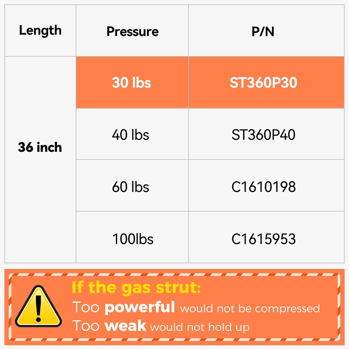 Pamagoo St360P30 36 Inch 30Lb/134N Gas Strut Lift Support For Custom Window Lid Rv Bed Storage Heavy Duty Basement Door Tonneau