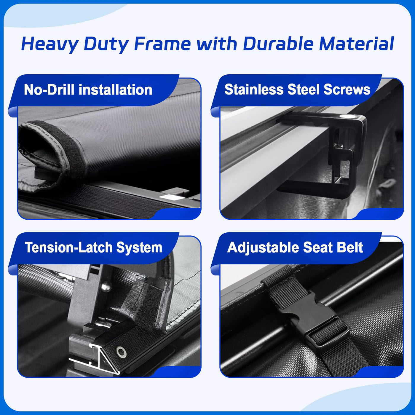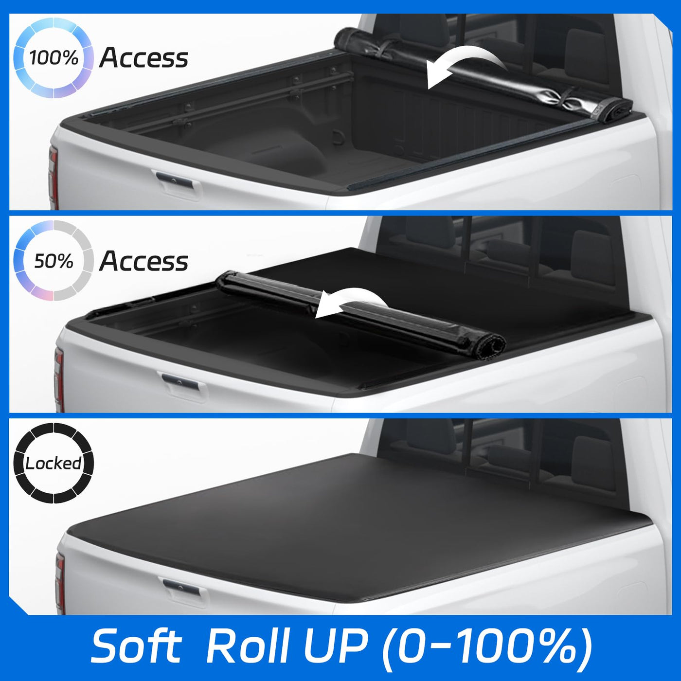 PZ Soft Roll-Up Tonneau Cover Replacement for 2022-2025 Ford Maverick 4.6Ft 54.4 in Black Truck Bed Cover