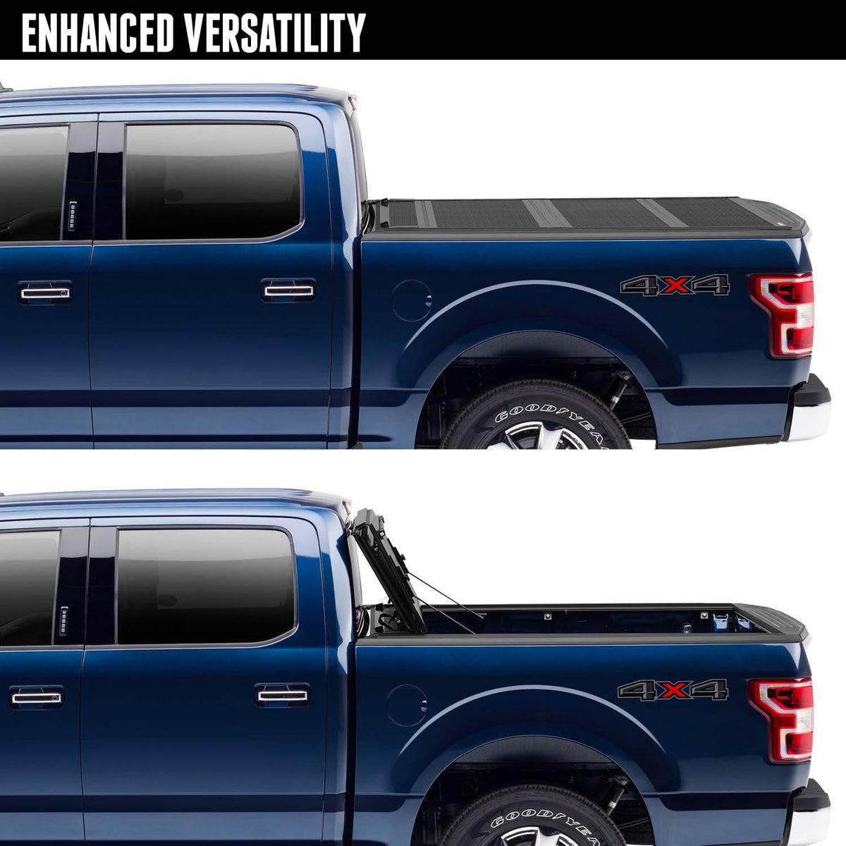 Its tough to find a folding tonneau cover as, well, tough as the FiberMax. It's custom-built from Fiberglass Reinforced Polymer (FRP) on the outside with a solid aluminum core inside, so it has the perfect blend of rigidity and lightweight maneuverability. Score one for your new truck bed set-up. The top of this BAK tonneau cover can hold up to 300lbs of evenly distributed weight so you can carry even more stuff when you need to. But thats not all. The BAKFlip FiberMax Tonneau Cover flips all the way up to the back of your bed, freeing up your entire payload area for hauling oversized gear. Once folded up, it shields your rear window from shifting cargo, and it's padded to protect your paint from scratches. And, while it does cover your rear window, this folding tonneau cover leaves your third brake light visible to cars approaching you from behind. This BAK tonneau cover uses a revolutionary hinge system that stops the nastiest weather from leaking in. Your truck bed wont be vulnerable to wind, sleet, and rain ever again. That keeps your tools and equipment dry, gives you peace of mind, and vanquishes the ongoing feud between whether the bed and the cab rein supreme when it comes to hauling your tools. Looks more like a stalemate now.