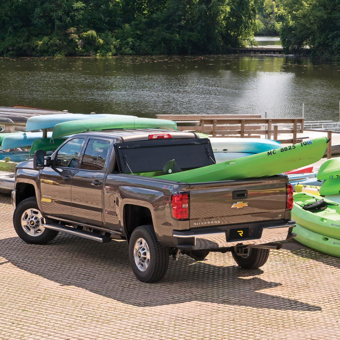 Q: What materials are used in the construction of the FiberMax Tonneau Cover?A: The FiberMax Tonneau Cover is built using fiberglass reinforced polymer (FRP) panels, which provide excellent resistance to dents and scratches, along with a solid aluminum core for added strength.