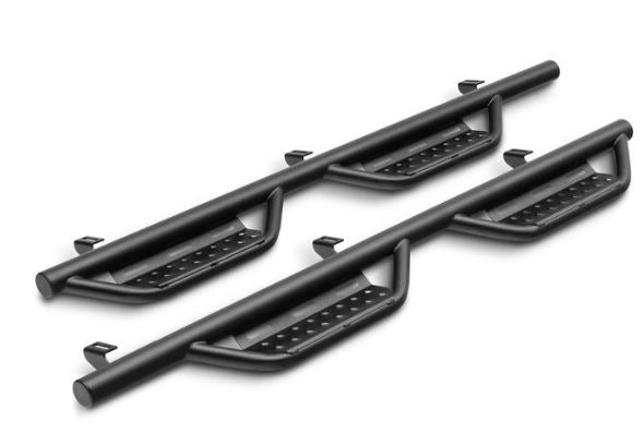 Q: What material are the N-Fab Nerf RS Steps made from?A: The Nerf RS Steps are constructed from durable alloy steel, ensuring longevity and strength while maintaining a sleek appearance in a premium textured black finish.