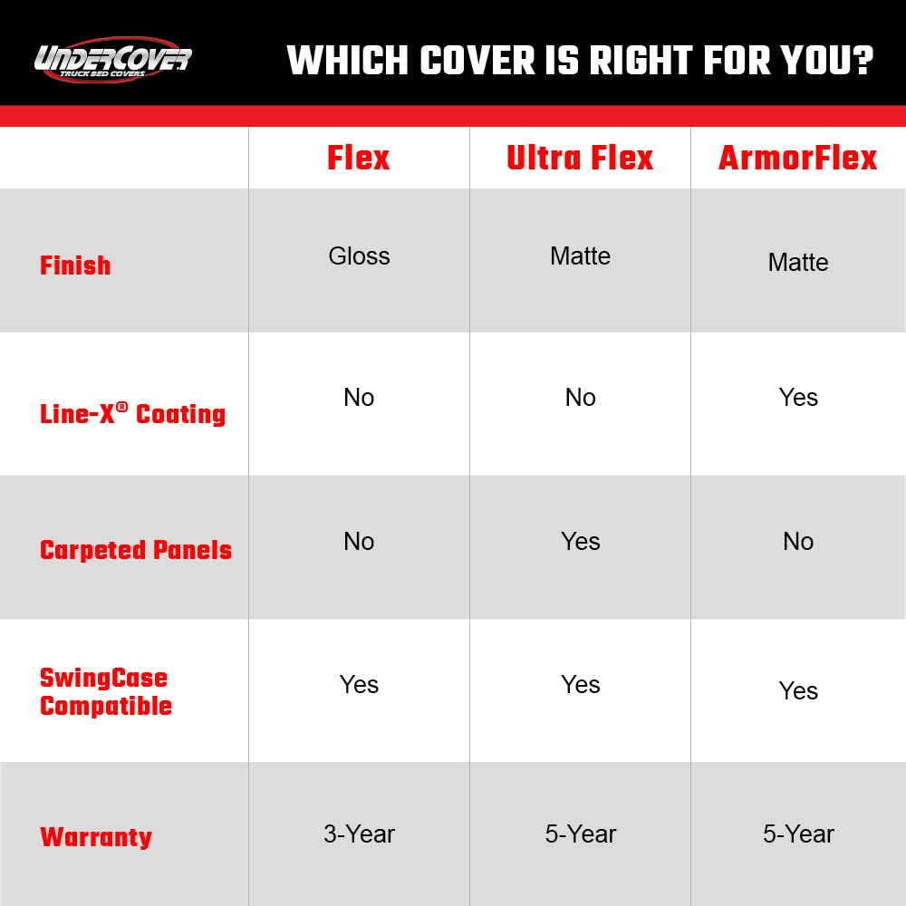 Q: Does the UnderCover Flex come with a warranty?A: Yes, the UnderCover Flex Tonneau Cover comes with a 3-year, hassle-free warranty. This guarantee reflects the manufacturer's confidence in the product's quality and durability, providing peace of mind for your purchase.