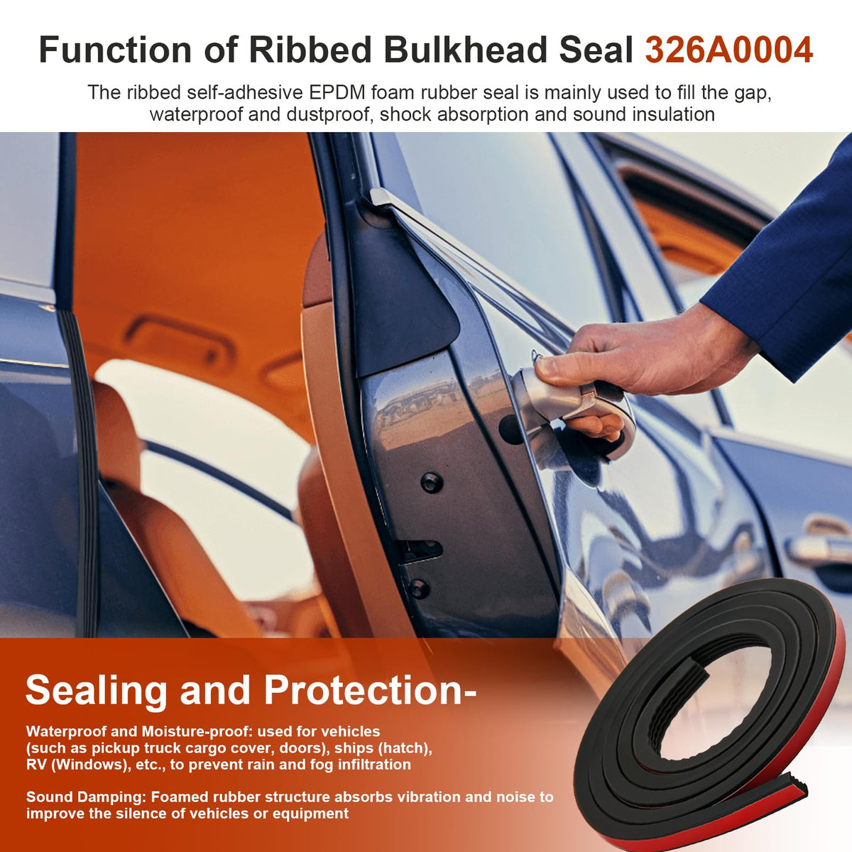 Ribbed Bulkhead Seal Strip 326A0004 3/5 in X 65 in, Tonneau Cover Ribbed Seal Strip Self-Adhesive EPDM Foam Rubber Seal Compatib