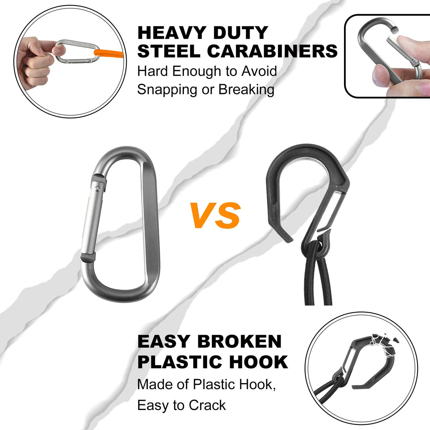 Q: How many D Clip Carabiners are included with the cargo net?A: The cargo net comes with 16 additional D Clip Carabiners made of aluminum alloy, which are rust-resistant and designed for easy attachment to your vehicle's anchor points.