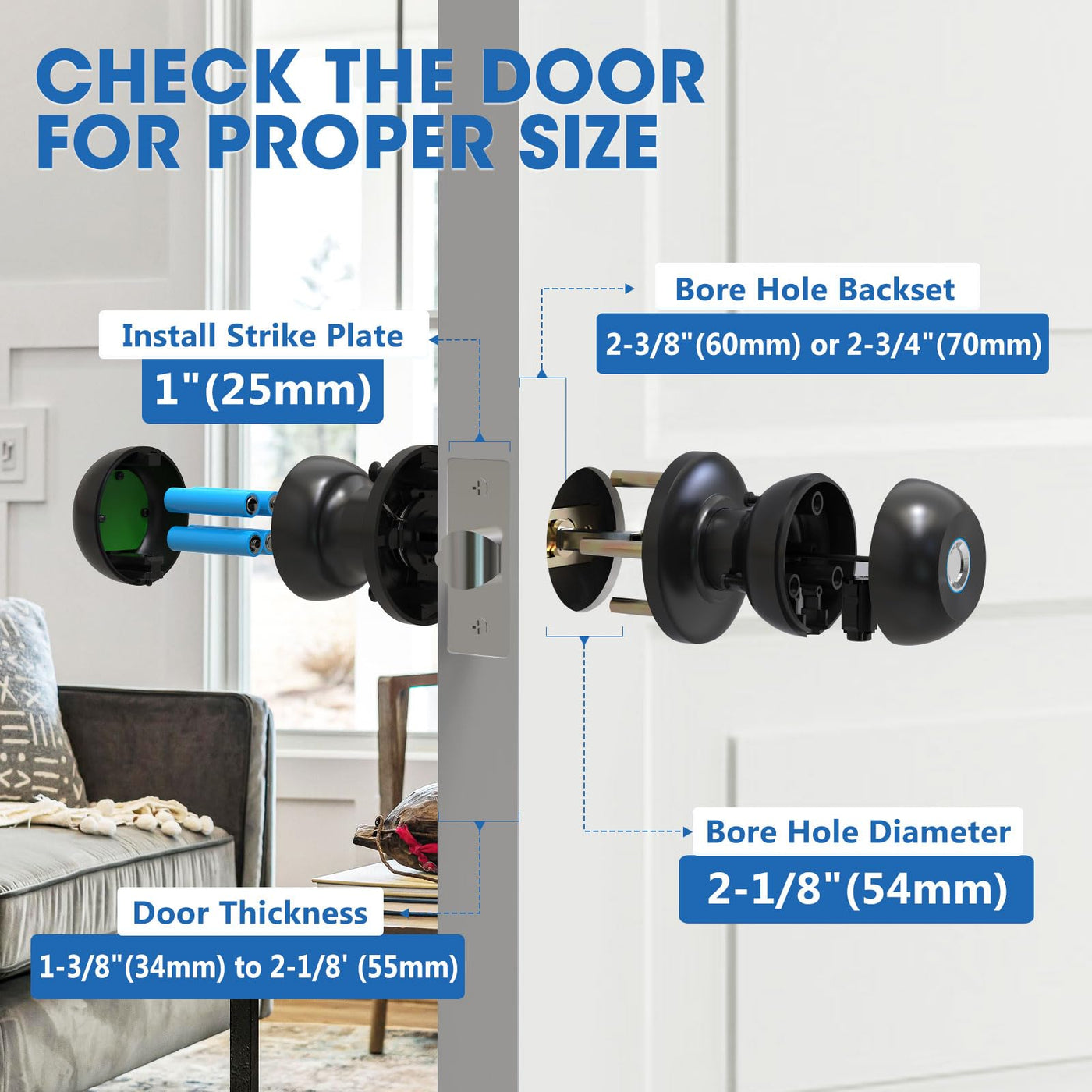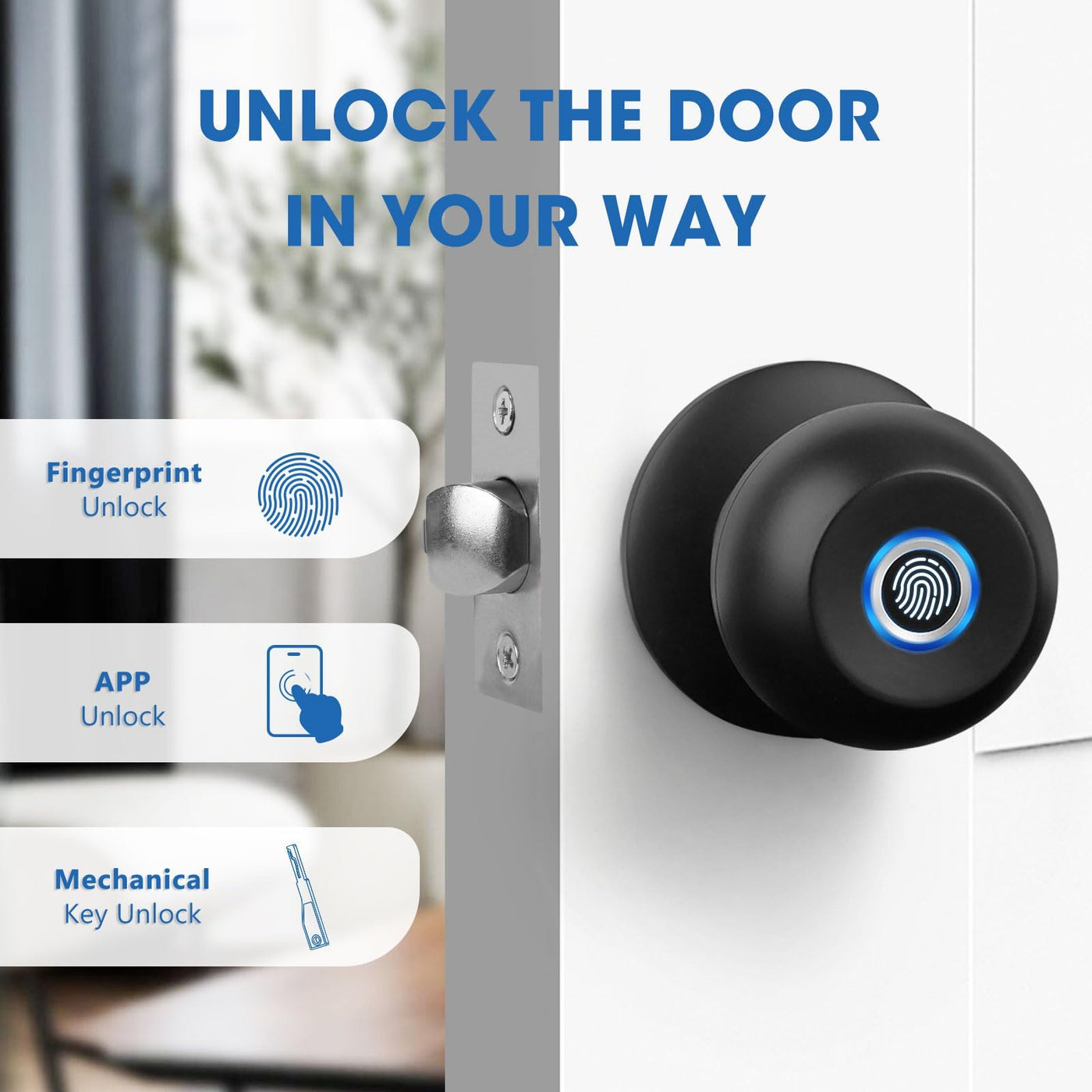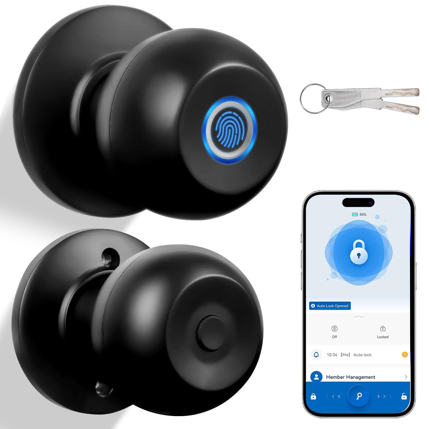 Smart lock, keyless entry door lock with handle, Up to 50 fingerprints unlock, app unlock, one touch unlock, smart control with app. Smart door knob with auto lock, passage mode, easy installation, emergency charge, hidden keyhole, keep privacy and safe. Smart locks for front door, You can lock/unlock your smart door knob anywhere anytime, and check real-time access logs.