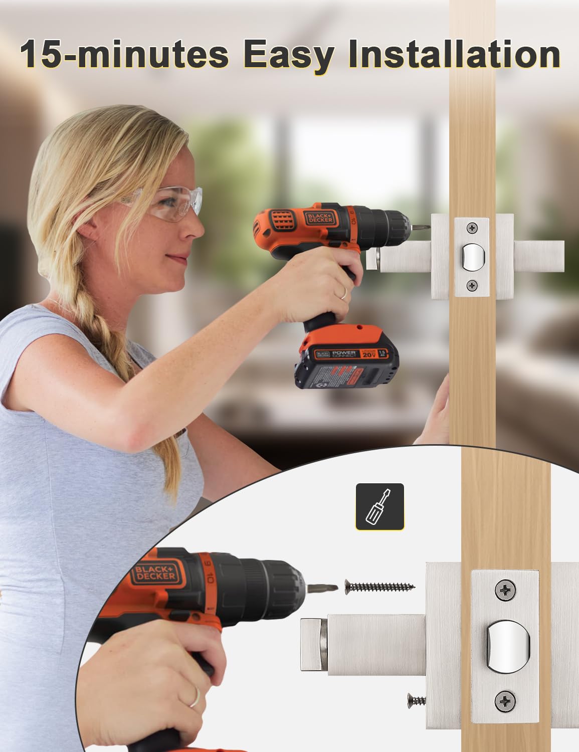 Q: How easy is it to install the Tinewa door handles?A: Installation of the Tinewa door handles is quite simple and can be done with just a Phillips screwdriver. They fit most standard doors with a thickness of 1-3/8" to 1-3/4" (35 mm to 45 mm), and no professional locksmith is required.