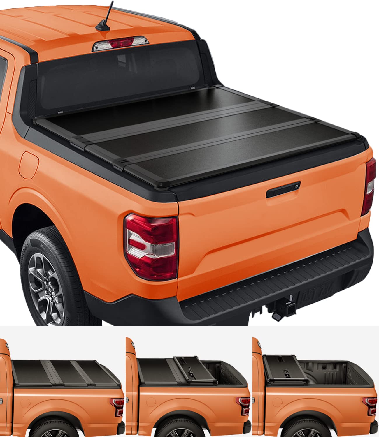 The Best Choice For Outdoor Activities And Travel Compatible with: 2022-2024 Maverick, Styleside 4.6ft(54.4in) Bed Please measure the length of your truck bed and make sure you have the correct model before ordering! All-around Protection All aluminum hinges contain rubber strips to enhance water resistance and allow panels to easily fold and unfold. Heavy-duty Structure Features honeycomb panel and stable hinges that can hold up to 350 lbs. Have no fears of snowstorms or thieves. Premium Material Gel coat FRP panels protect against UV damage, annoying fingerprints, and scratches. Custom Fit For You Each cover is custom fit to your specific year, make, and model, ensuring a perfect fit for your truck.