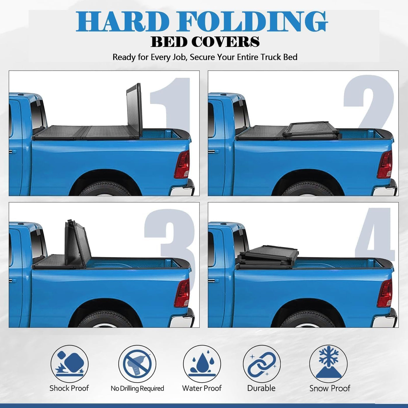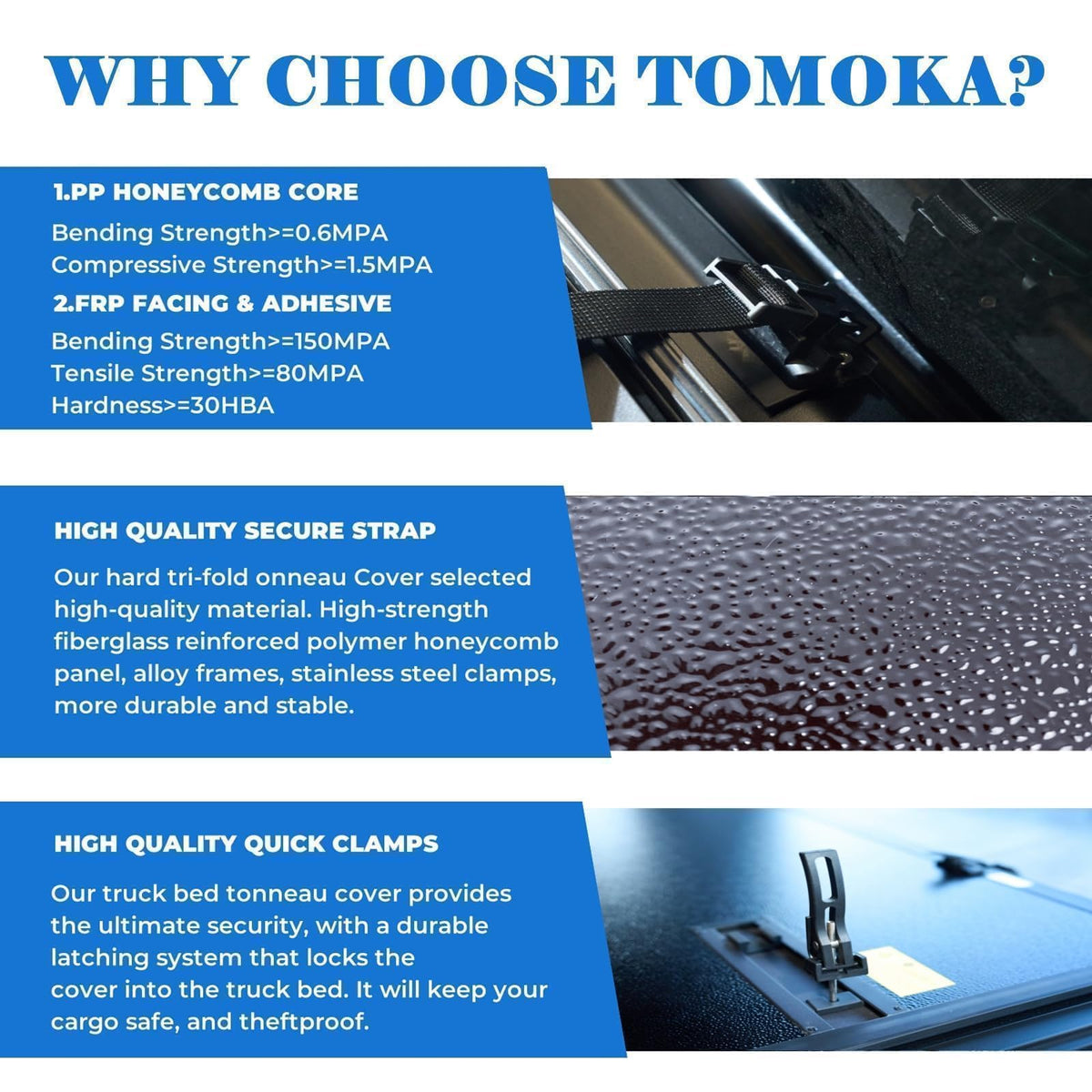 TOMOKA 4.6ft FRP Hard Folding Truck Bed Tonneau Cover Compatible with 2022 2023 2024 2025 Ford Maverick 4.5ft Bed | Solid & Wate