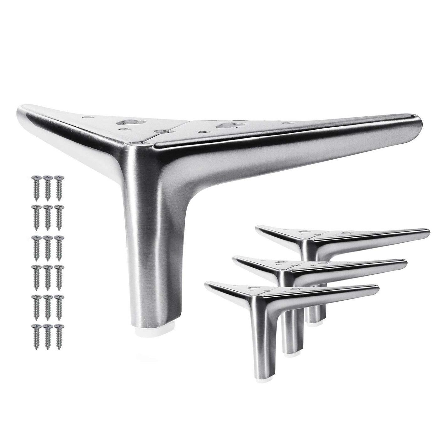 Vehcil 4-Inch Furniture Legs, Legs For Furniture Set Of 4, Modern Furniture Feet For Cabinet Sofa Couch Table Chair Bed Dresser Wardrobe Risers Diy Replacement-Brushed Satin Nickel