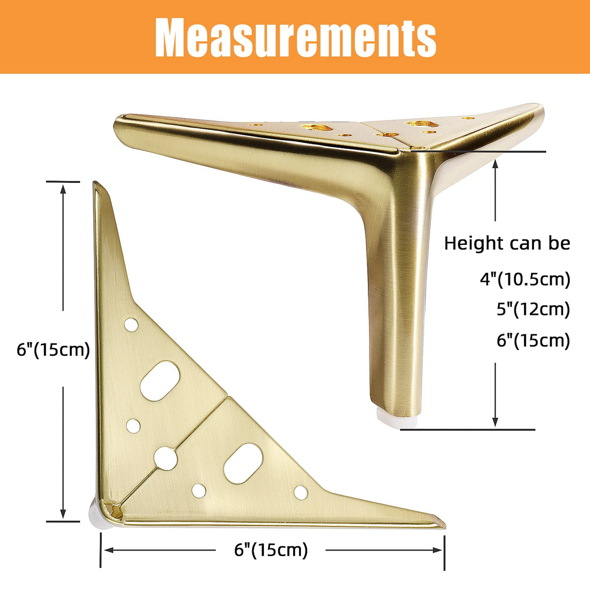 Q: What is the weight capacity of the VEHCIL 4-inch furniture legs?A: While specific weight capacity information is not provided, the sturdy triangle shape and robust metal construction ensure they offer strong stability for various furniture types.