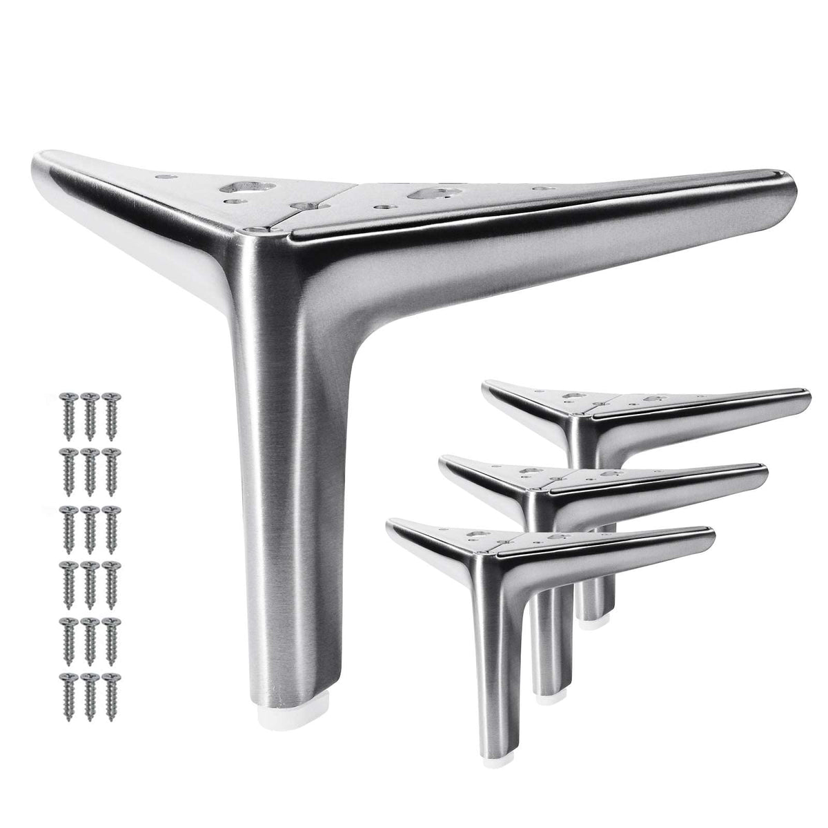 Vehcil 6-Inch Furniture Legs, Legs For Furniture Set Of 4, Modern Furniture Feet For Cabinet Sofa Couch Table Chair Bed Dresser Wardrobe Risers Diy Replacement-Brushed Satin Nickel