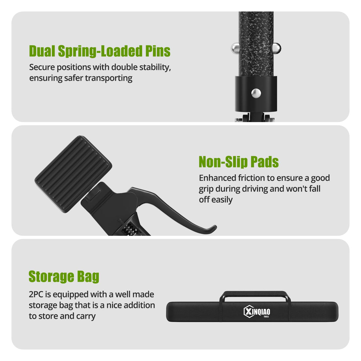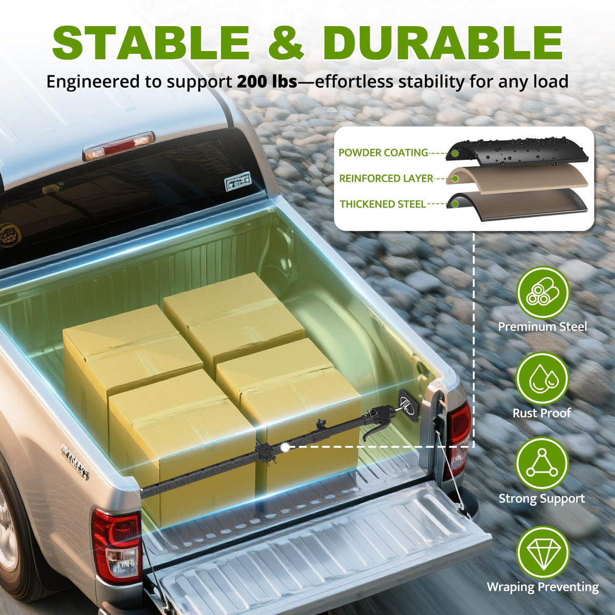 Are you tired of your cargo shifting, getting messy, or even getting damaged during transit? The XINQIAO Cargo Bar for Pickup Truck Beds is here to help. Designed to support up to 200 lbs, this cargo bar is both strong and easy to use. Simply secure it properly, and you can conveniently adjust the length by pumping the handle Cargo Bar Inner pole features a pin that locks into the holes of the outer tube White alignment line on the inner tube ensures correct positioning Extends from 39.4 to 70.8, fitting most truck beds Made of thickened steel tube for heavy-duty, solid support up to 200 lbs Rust-free coated design with an elegant look Rubber-padded feet provide a soft, non-slip contact without damaging your vehicle Pivot feet, 180 swivel, suitable for uneven surfaces. You can tighten the screw to fasten the feet Cargo Net Durable full-size nylon net Size: 37.4 X 17.7 Prevents small items from falling out Divider Bar Made of heavy-duty steel for durability Divides storage space to prevent cargo from shifting side to side during transit Length: 12 Instructions Hang the cargo net to store items Position the cargo bar across the width of the bed Align the white line on the inner tube with the holes on the outer tube Pump the handle to secure the bar in place Attach the divider bar with screws Maintenance Regularly apply maintenance spray or oil to the sliding parts to extend the life of your tool