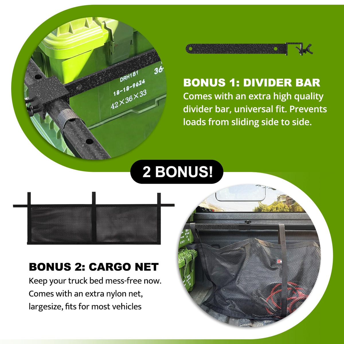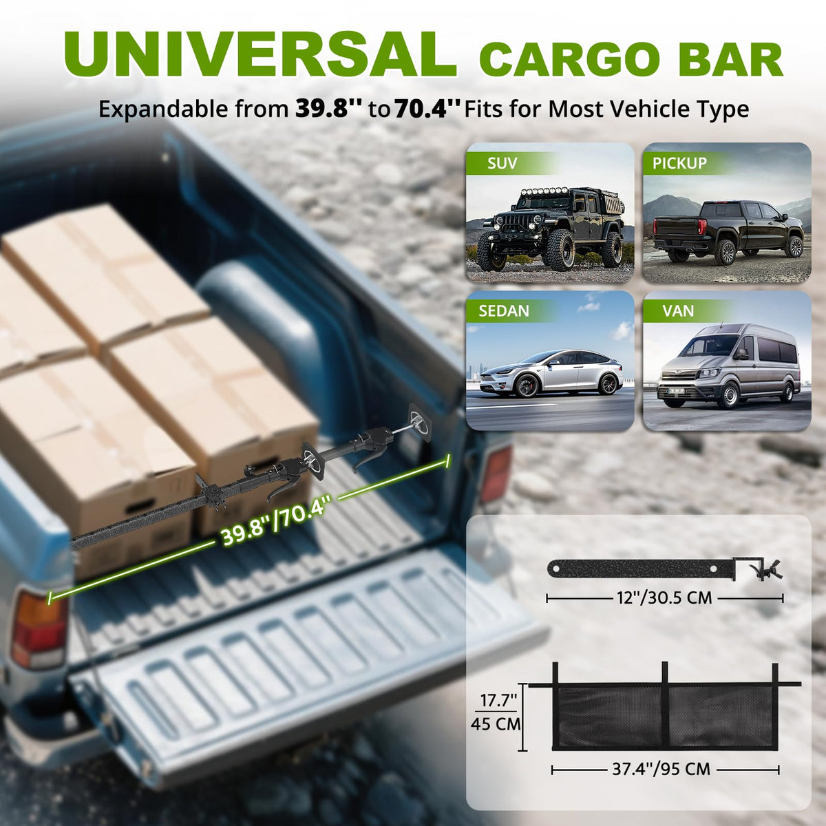 XINQIAO Truck Bed Cargo Bar for Pickup 39.4 in to 70.8 in Adjustable, Comes with a Net and a Divider, 200 LB Capacity Also Used