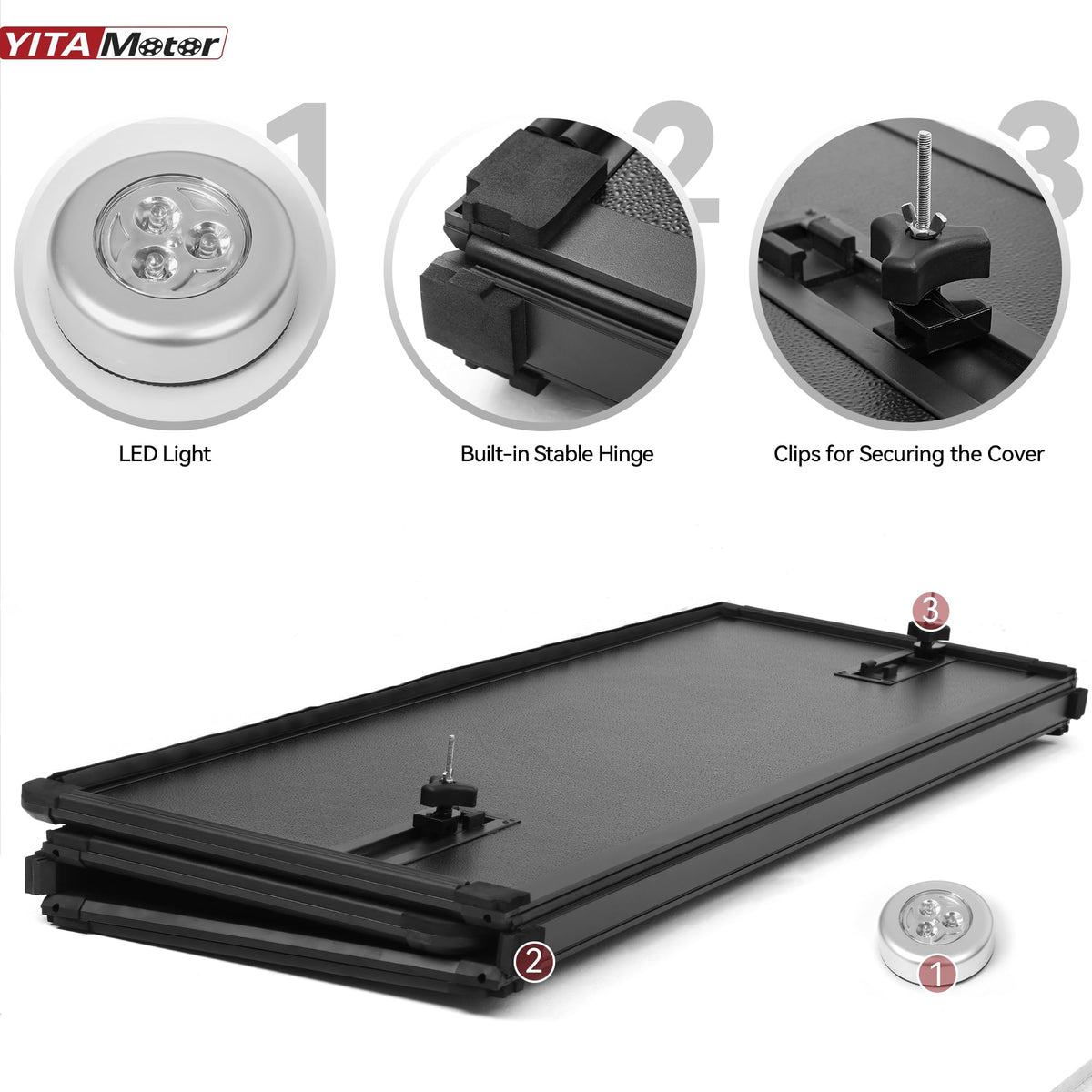 Versatile Compatibility: Designed to fit for 2002-2025 Dodge Ram 1500 (2019-2024 Classic & 2019-2025 New Body) & 2003-2024 Dodge Ram 2500 3500 6.4 ft bed models without Rambox, this YITAMOTOR truck bed cover enhances the utility of your vehicle with a custom-fit solution | Reliable and Weather-Resistant: Constructed from sturdy FRP material, this pickup tonneau cover provides superior scratch and weather resistance, protecting your cargo from rain, snow, dirt, and UV while maintaining its appearance over time | Easy Installation: This hard tri-fold tonneau cover installs effortlessly without the need for drilling or altering your truck; it comes with a detailed guide for a straightforward setup process, ensuring a secure fit | Reinforced Strength and Safety: The non-slip FRP sheet paired with a PP honeycomb core offers a load-bearing capacity of up to 450 pounds; reinforced latches and embedded clamps ensure the cover remains closed during transit, adding an extra layer of safety | Use and Safty: Fold the cover singly, doubly, or triply for easy access to your truck bed, and secure it with nylon straps when not in use; always follow the installation instructions carefully and ensure all bolts are tightened before driving to prevent accidents