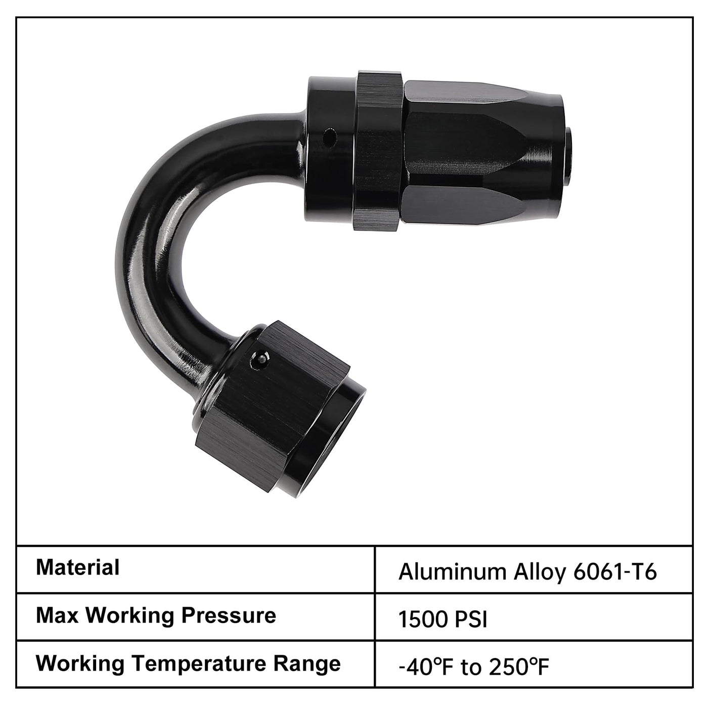 Q: What is the maximum working pressure for this fitting?A: The EVIL ENERGY 10AN Hose End Fitting has a maximum working pressure of 1500PSI, making it suitable for high-pressure applications.