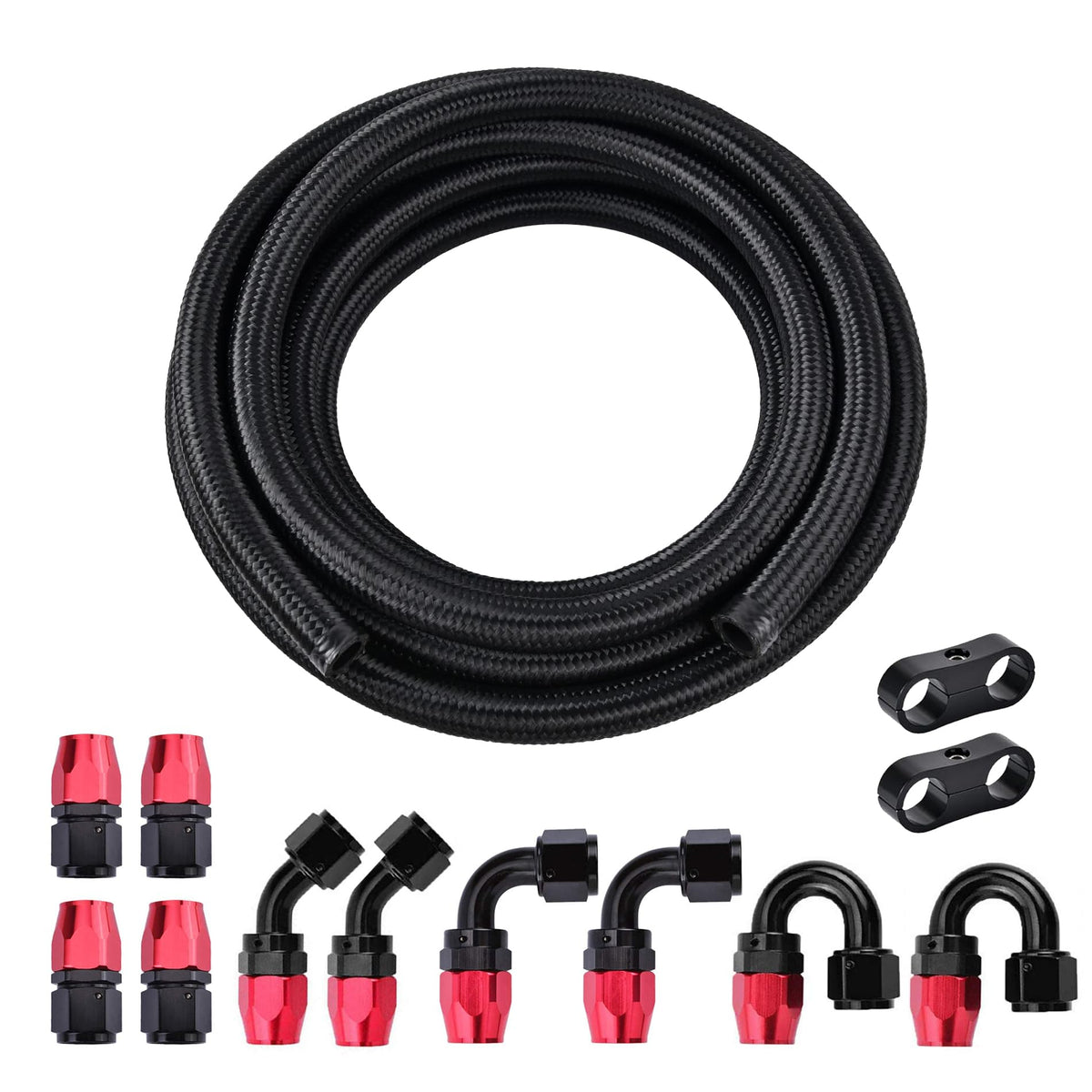 Evil Energy 6An Fuel Line Kit, 6An Nylon Braided Fuel Line Hose Fitting Kit Cpe 20Ft Black&Red