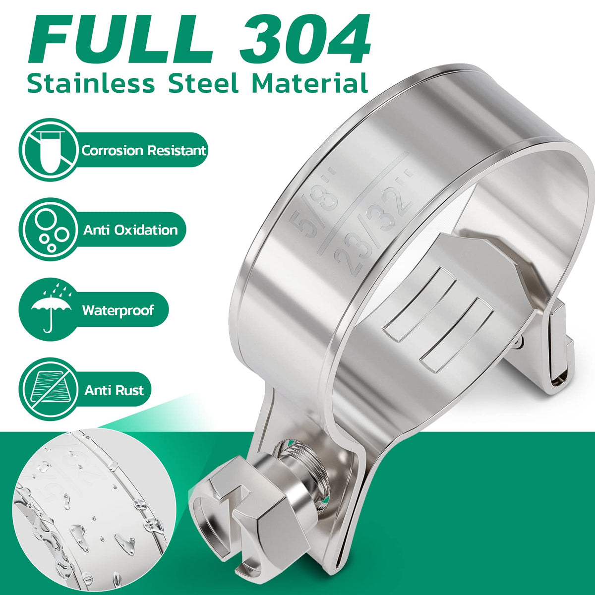 Q: What material are the hose clamps made of?A: The hose clamps in this kit are made of high-quality 304 stainless steel, which provides excellent rust resistance and durability, making them suitable for outdoor use.