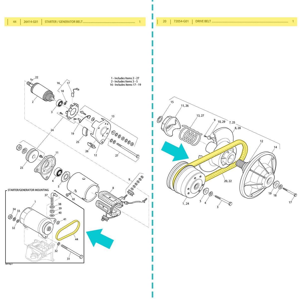 Q: What OEM part numbers does this belt kit replace?A: This kit replaces the following OEM part numbers: Drive belt - 72054G01, 72024G01, 72025G01; Starter/generator belt - 26414G01, 630587.