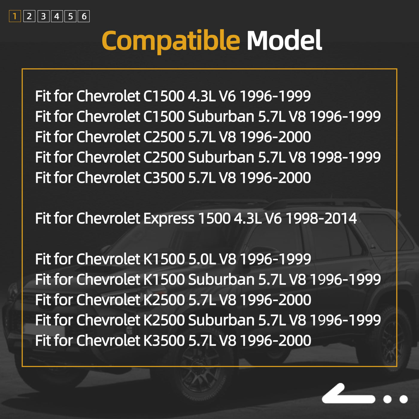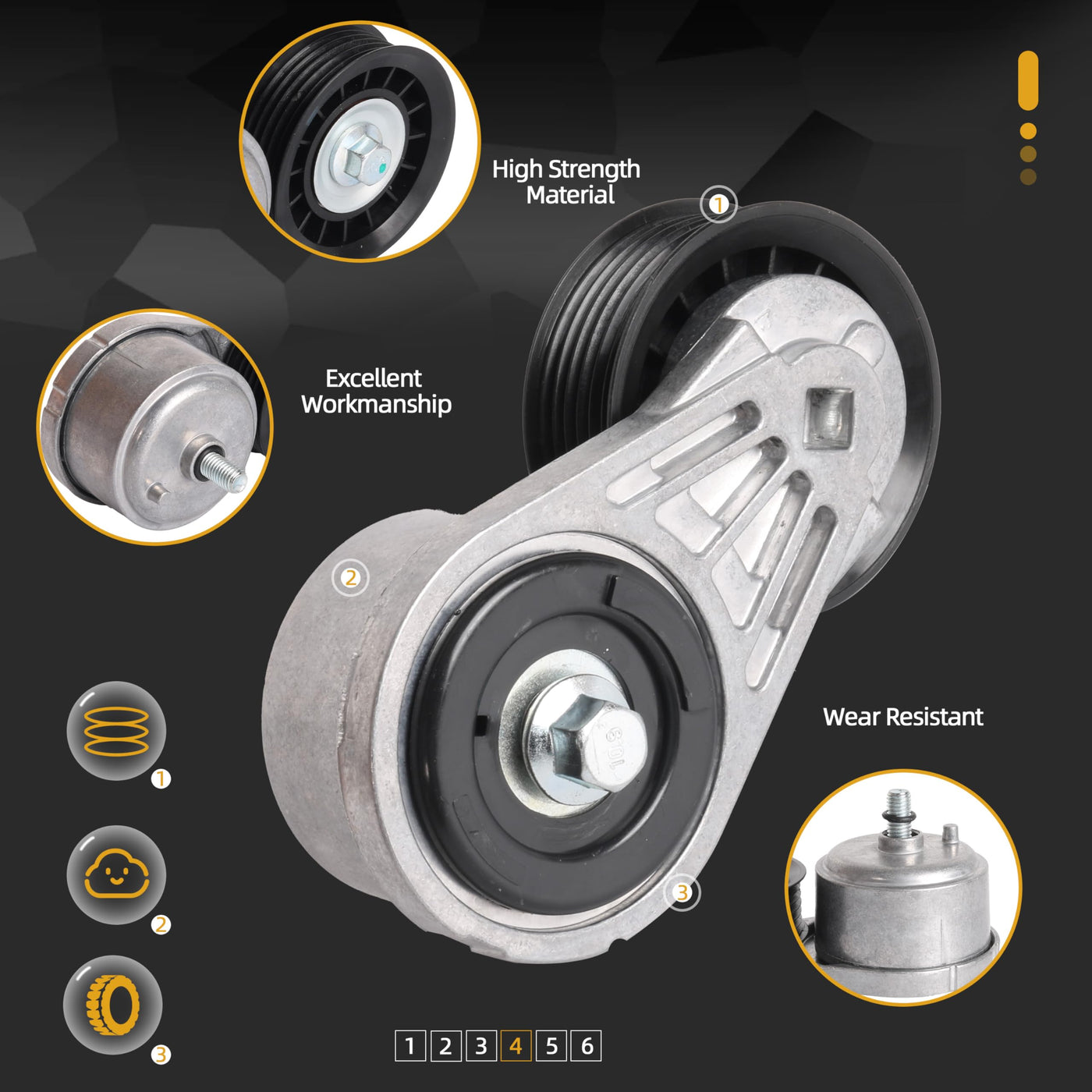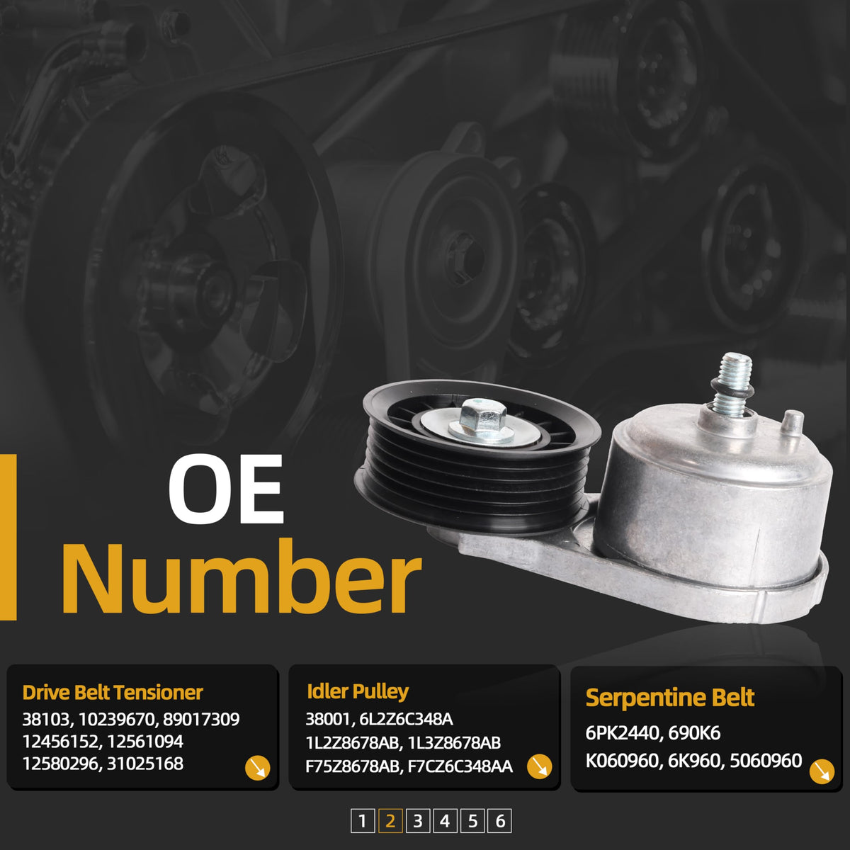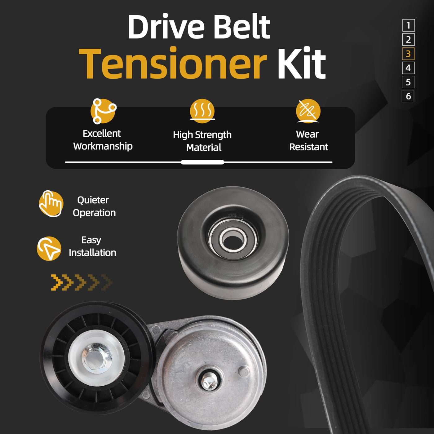 Item Specifics:Pulley Type: IdlerBelt Type: SerpentinePart Type: Serpentine Belt Drive Component KitFitment Type: Direct ReplacementCompatible Model:For Chevrolet C1500 4.3L V6 1996-1999 For Chevrolet C1500 Suburban 5.7L V8 1996-1999 For Chevrolet C2500 5.7L V8 1996-2000 For Chevrolet C2500 Suburban 5.7L V8 1998-1999 For Chevrolet C3500 5.7L V8 1996-2000 For Chevrolet Express 1500 4.3L V6 1998-2014 For Chevrolet K1500 5.0L V8 1996-1999 For Chevrolet K1500 Suburban 5.7L V8 1996-1999 For Chevrolet K2500 5.7L V8 1996-2000 For Chevrolet K2500 Suburban 5.7L V8 1996-1999 For Chevrolet K3500 5.7L V8 1996-2000 Replace Part Number:Drive Belt Tensioner Replaces#38103, 10239670, 8901730912456152, 12561094, 1258029631025168, 419100, 8102396700Idler Pulley Replaces#38001, 6L2Z6C348A 1L2Z8678AB, 1L3Z8678ABF75Z8678AB, F7CZ6C348AASerpentine Belt Replaces#6PK2440 K060960, 6K9605060960, 690K6 Package Includes:1* Tensioner Assembly 381031* Serpentine Belt 6PK2440 1* Idler Pulley 38001