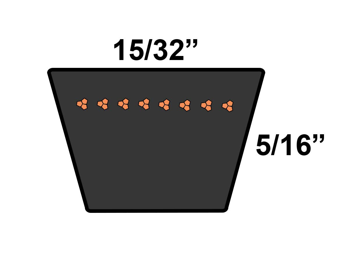 Q: What are the dimensions of the D&D PowerDrive 303417921 replacement belt?A: The D&D PowerDrive 303417921 replacement belt measures 1/2 inch in width and has an overall length of 57 inches.