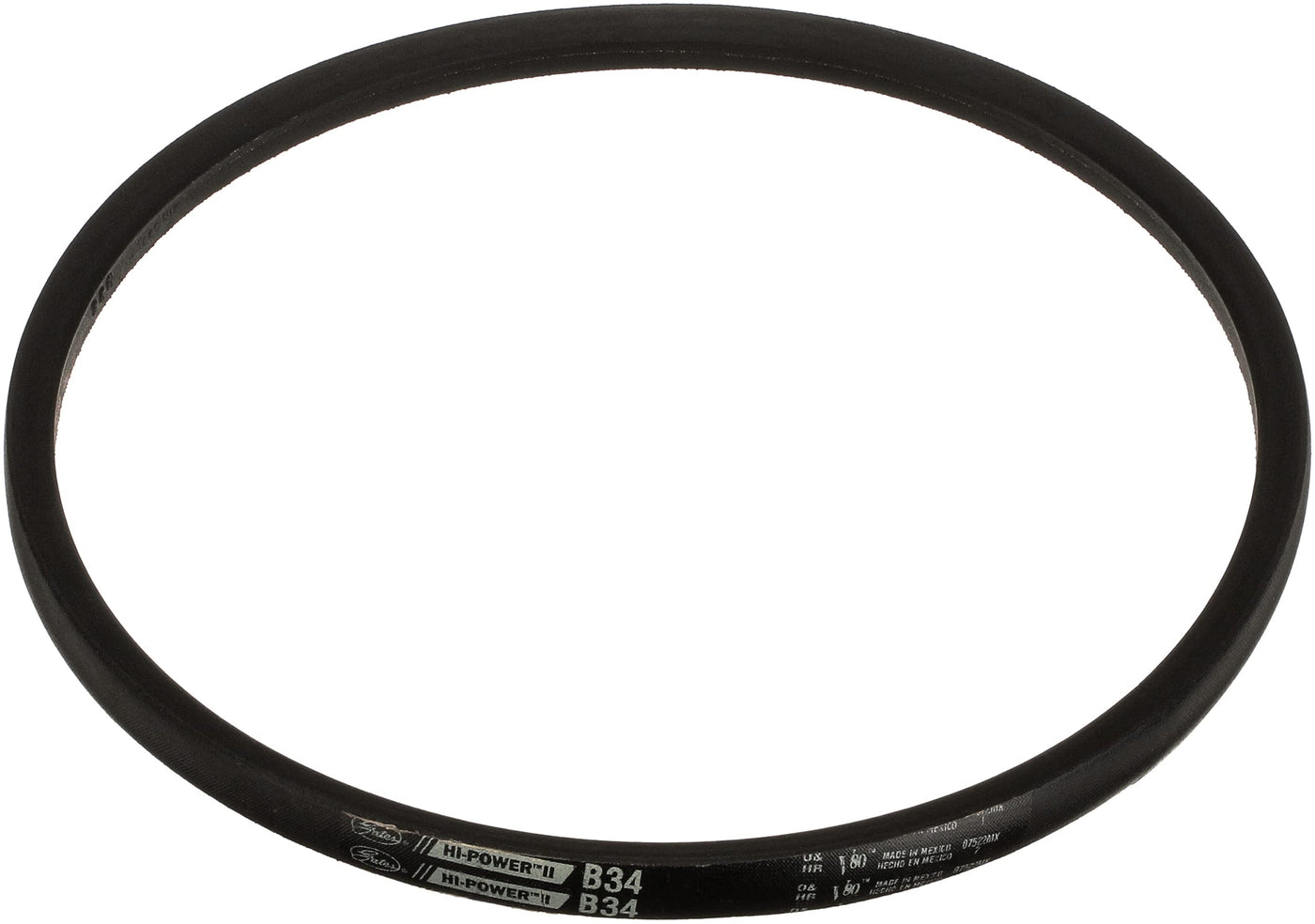 Q: What are the main benefits of using the GATES B34 BELT?A: The GATES B34 BELT is designed with a composite, multi-purpose construction that resists oil, heat, ozone, sunlight, and aging, making it suitable for various industrial applications. Its Flex-Bonded Cords ensure equal load distribution and absorb bending stress without deterioration, enhancing belt life.