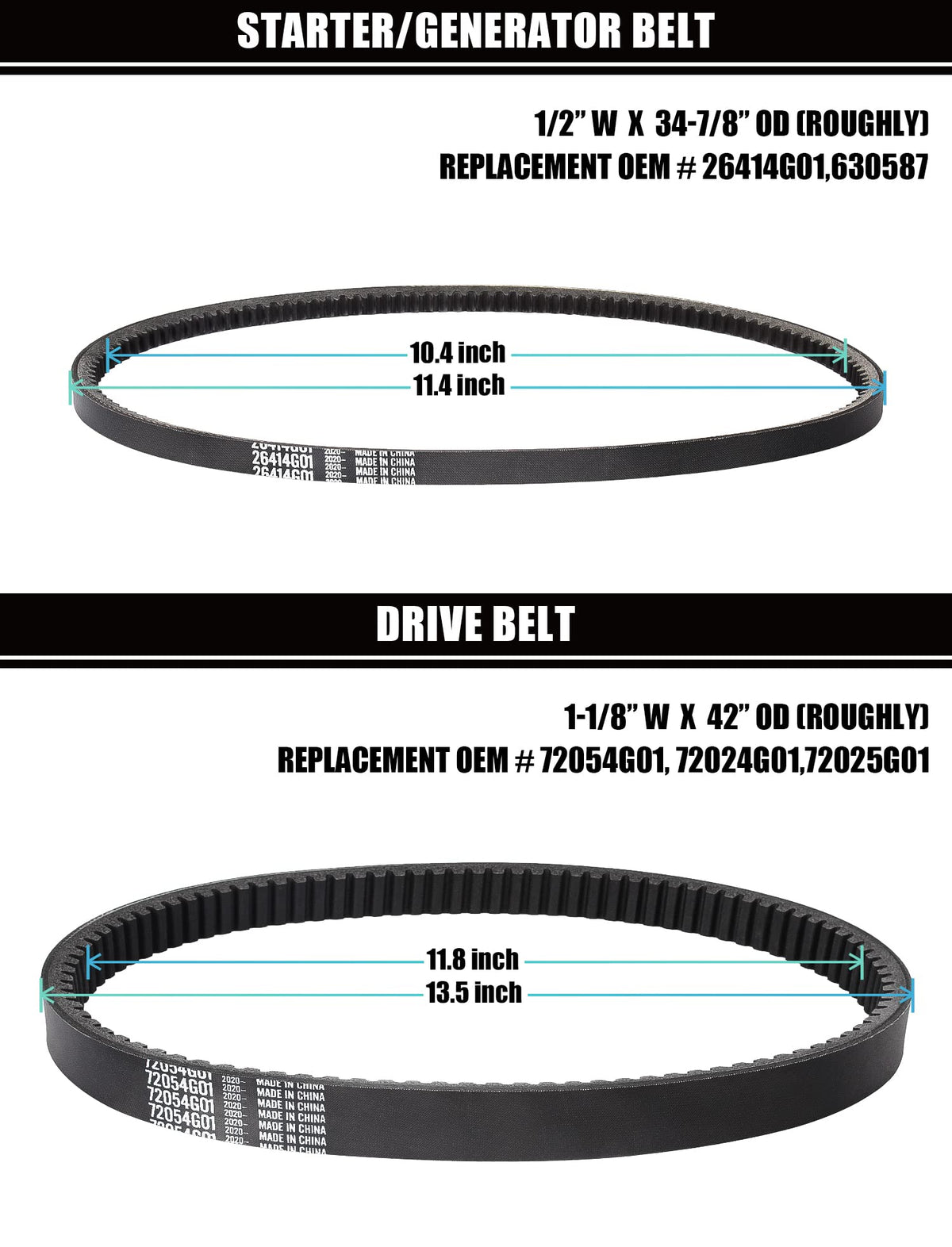 Geggkake EZGO Drive Belt & Starter Generator Belt Kits, Fits 4 Cycle 1994-up EZGO TXT/Medalist Gas Golf Cart, OEM# 72054G01, 72024G01, 72025G01, 26414G01. Please feel free to contact us if you have any question of the item. We will response you as soon as possible.
