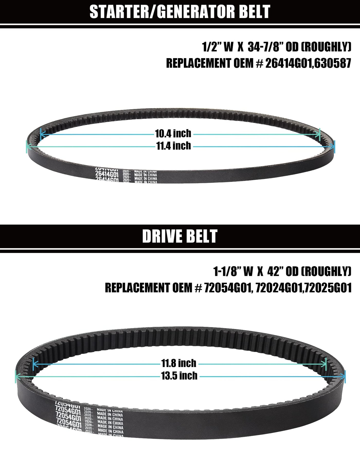 Geggkake Ezgo Drive Belt & Starter Generator Belt Kits, Fits 4 Cycle 1994-Up Ezgo Txt/Medalist Gas Golf Cart, Oem# 72054G01, 720