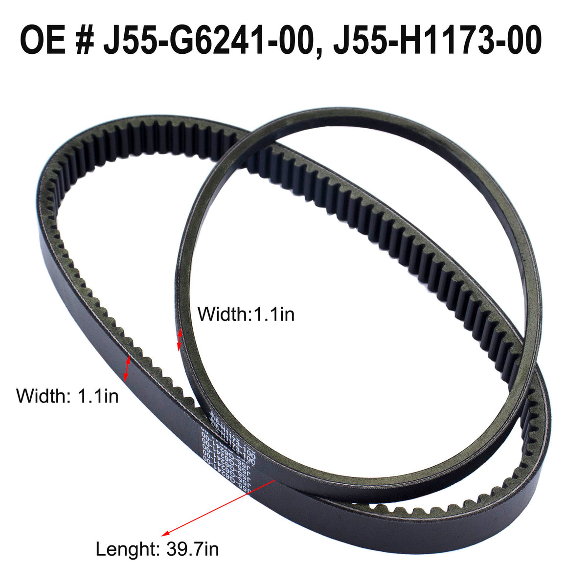 OE Number: Replace OE # JN6-H1173-00 J55-G6241-00. Compatibility Replacement for Yamaha G2, G5, G8, G9, G11, G14, G16, G20, G22 and 2012-up G29 Drive gas golf carts.( Please Note These belts will NOT fit the G3 models, not suitable for G29/Drive 2007-2011 ) . Drive Belt & Starter Generator Belt Set replaces #J55-G6241-00 and #J55-H1173-00. Clutch Drive Belt Replaces OEM #J55-G6241-00. Measuring roughly-1-3/16''W x 39-1/2'' OD. Starter/Generator belt Replaces OEM #JN6-H1173-00. Measuring roughly-1/2''W x 35'' OD. This is a high quality aftermarket part made to meet or exceed OEM specifications. Belts can dry rot and tear over time and require replacing to ensure your golf carts performance. A worn belt will slip and your cart will not be able to run properly until it is replaced. High Temperature Resistance-- Clutch Drive belt is made of high-quality thick rubber, superb manufacturing process, and has better heat resistance and heat dissipation. The drive belt j55-g6241-01 withstand the friction of high-speed operation without melting, works well at high temperatures. Long Life-- For the yamaha golf cart drive belt material comes from oak, which can be refined and crystallized, has the highest tensile strength, and effectively avoids various fracture problems. The transmission belt is sturdy and has a long service life. Easy Installation-- This OEM replacement part has been developed to meet or even exceed the manufacturer's original equipment specifications. Please rest assured to buy, if you have any questions, please contact us by email! ? Package Include: 1 x Starter Belt 1 x Drive Belt