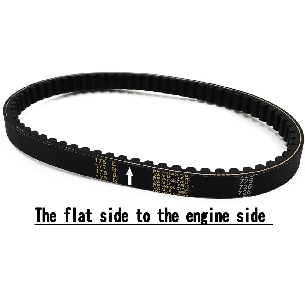 Q: What maintenance is required for the QYMOTO Go Kart Drive Belt 725?A: Regular inspection of the QYMOTO Go Kart Drive Belt 725 is recommended to check for wear and tear. Ensure that it is aligned correctly and free from debris. If you notice any signs of damage or slippage, replacement is advised to maintain optimal performance.