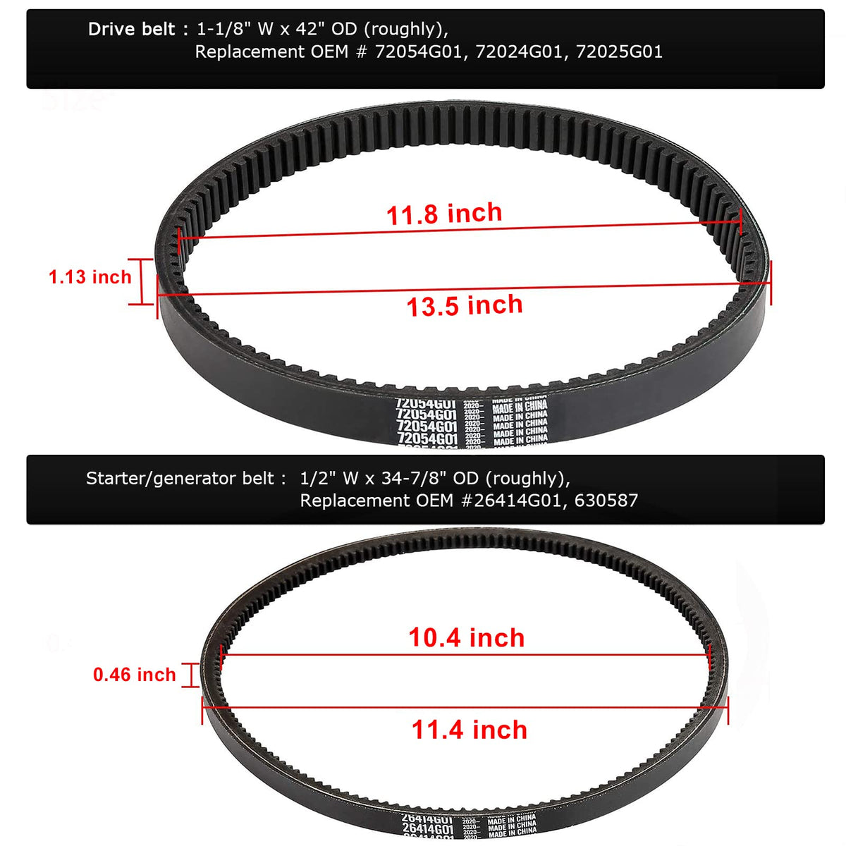 Roykaw Ezgo Txt Gas Drive Belt & Starter Belts Kit For Ezgo 4 Cycle Gas Golf Cart Txt Cushman Express Marathon Medalist St Vehicles Terrain 1994-2013, Oem # 72054G01, 72024G01, 72025G01, 26414G01