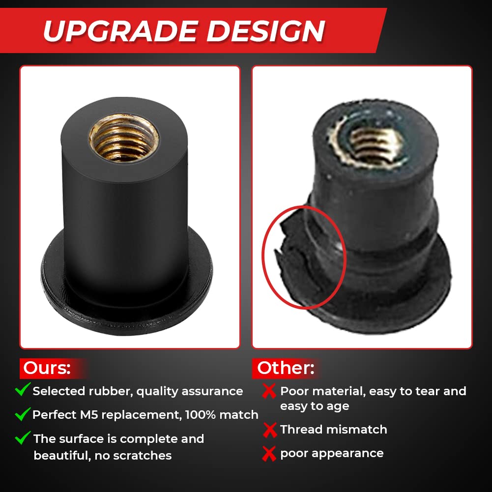 10PCS Wellnut, Alpha Rider M5 5MM Rubber Well Nut Windscreen Fairing Bolt Kit For Universal Motorcycle For Suzuki Honda Yamaha K